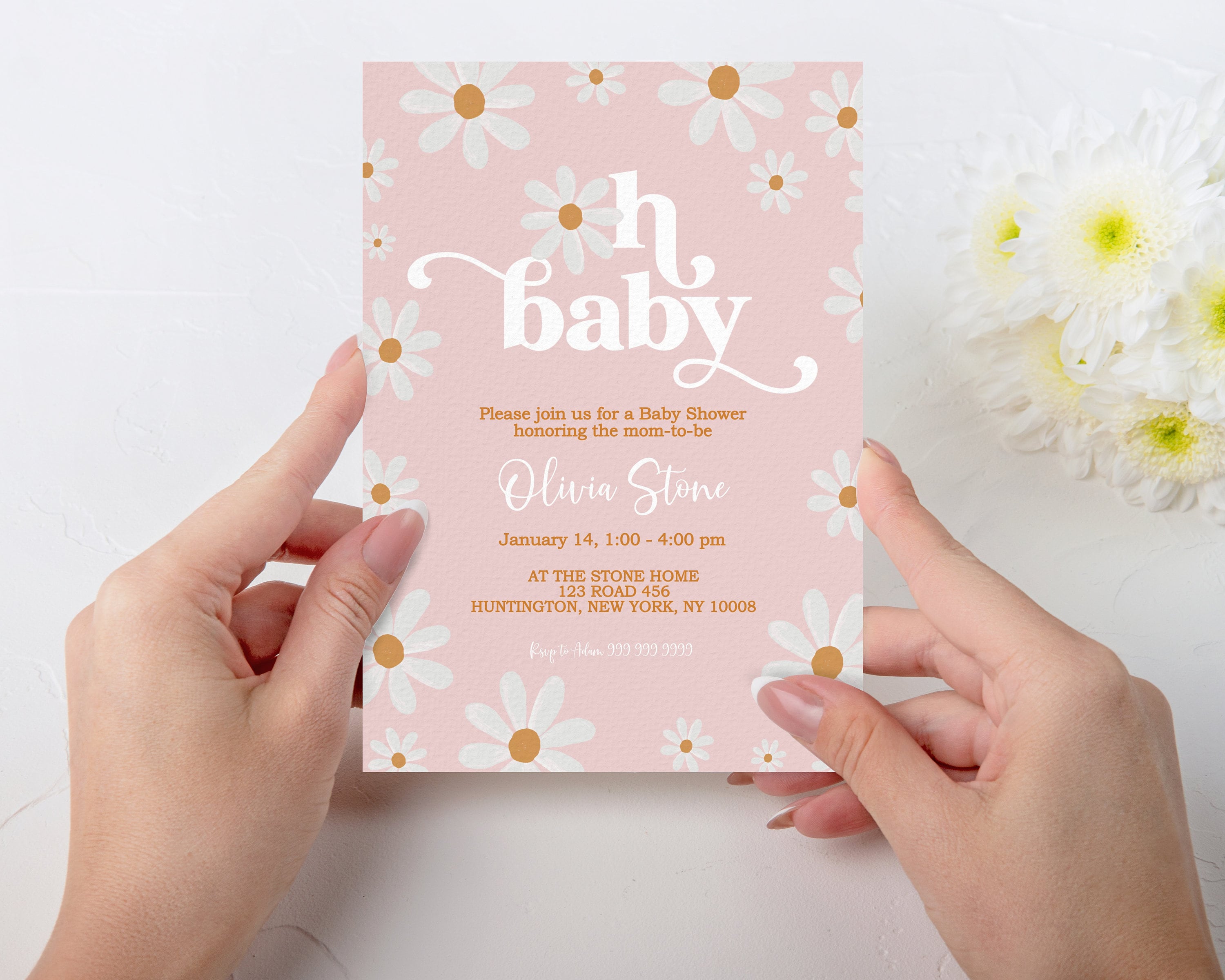 Groovy Daisy Baby Shower Invitation Editable Template, Oh Baby Dais...