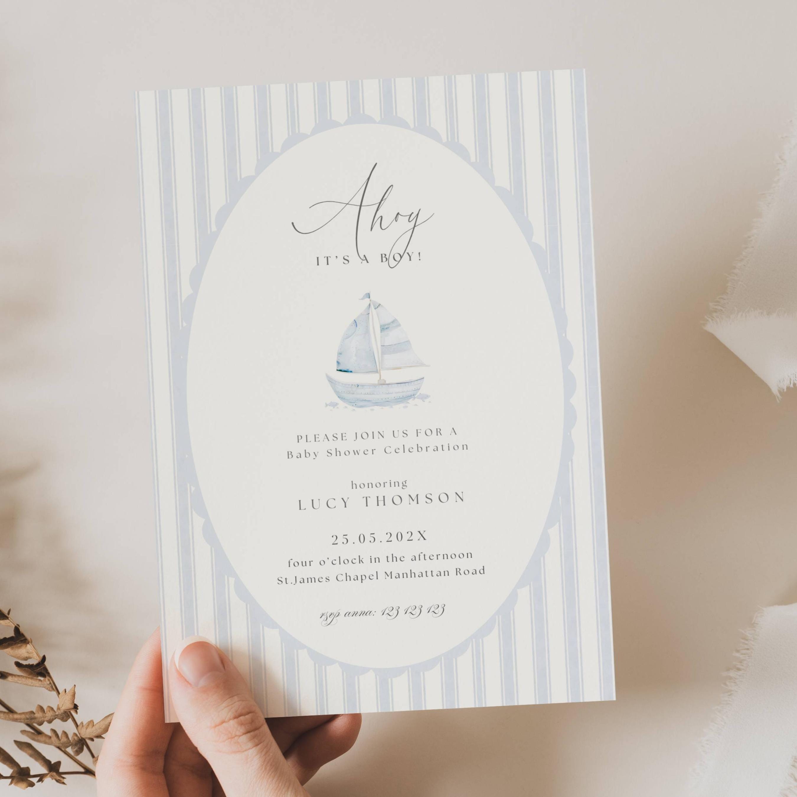 Ahoy Its A Boy Baby Shower Invites, Nautical Baby Shower Invite, Sa...