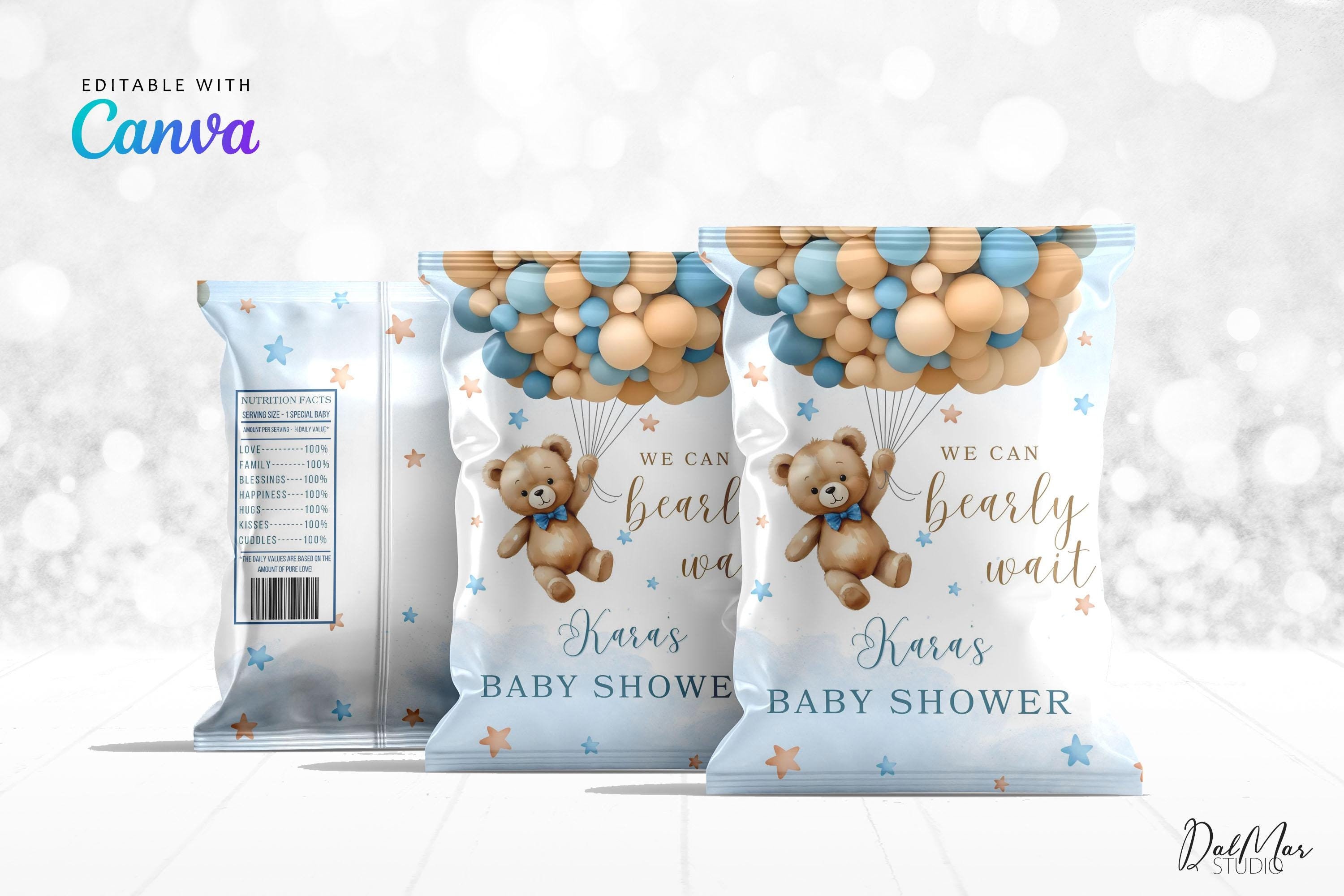 Editable Teddy Bear Baby Shower Chip Bag, Editable in Canva Balloon...