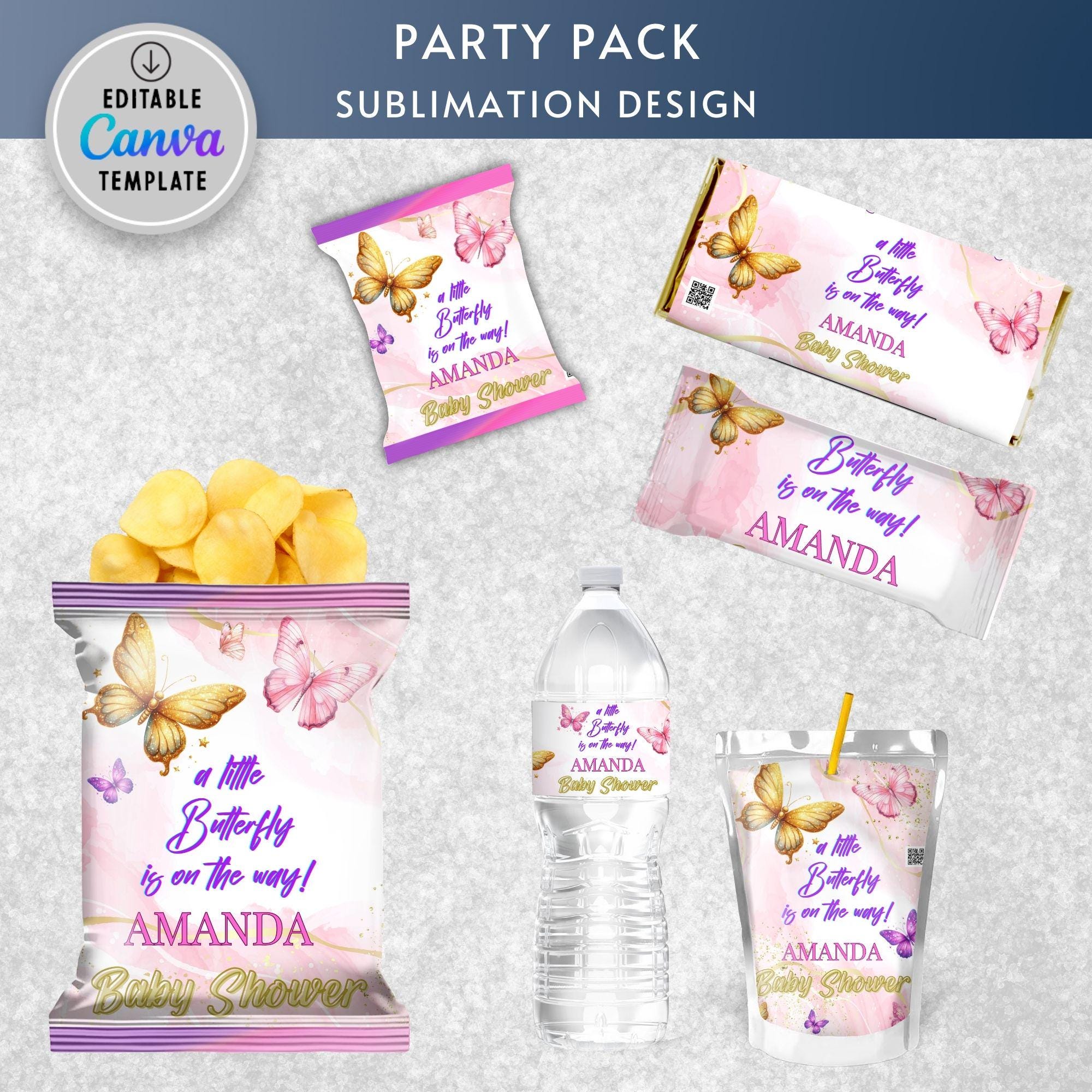 Welcome to my Digitable Templates Shop! Editable Butterfly Baby Shower Chip Bag, Pink Purple Gold Bu...
