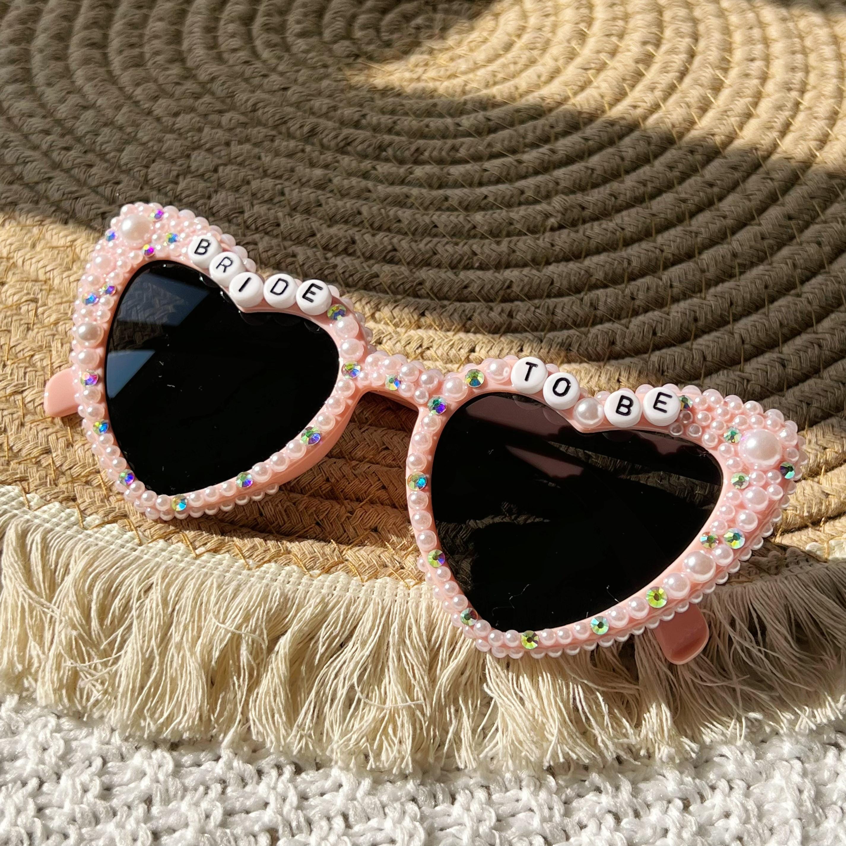 Personalized bridal,PINK pearl bride glasses,Bride bachelorette par...