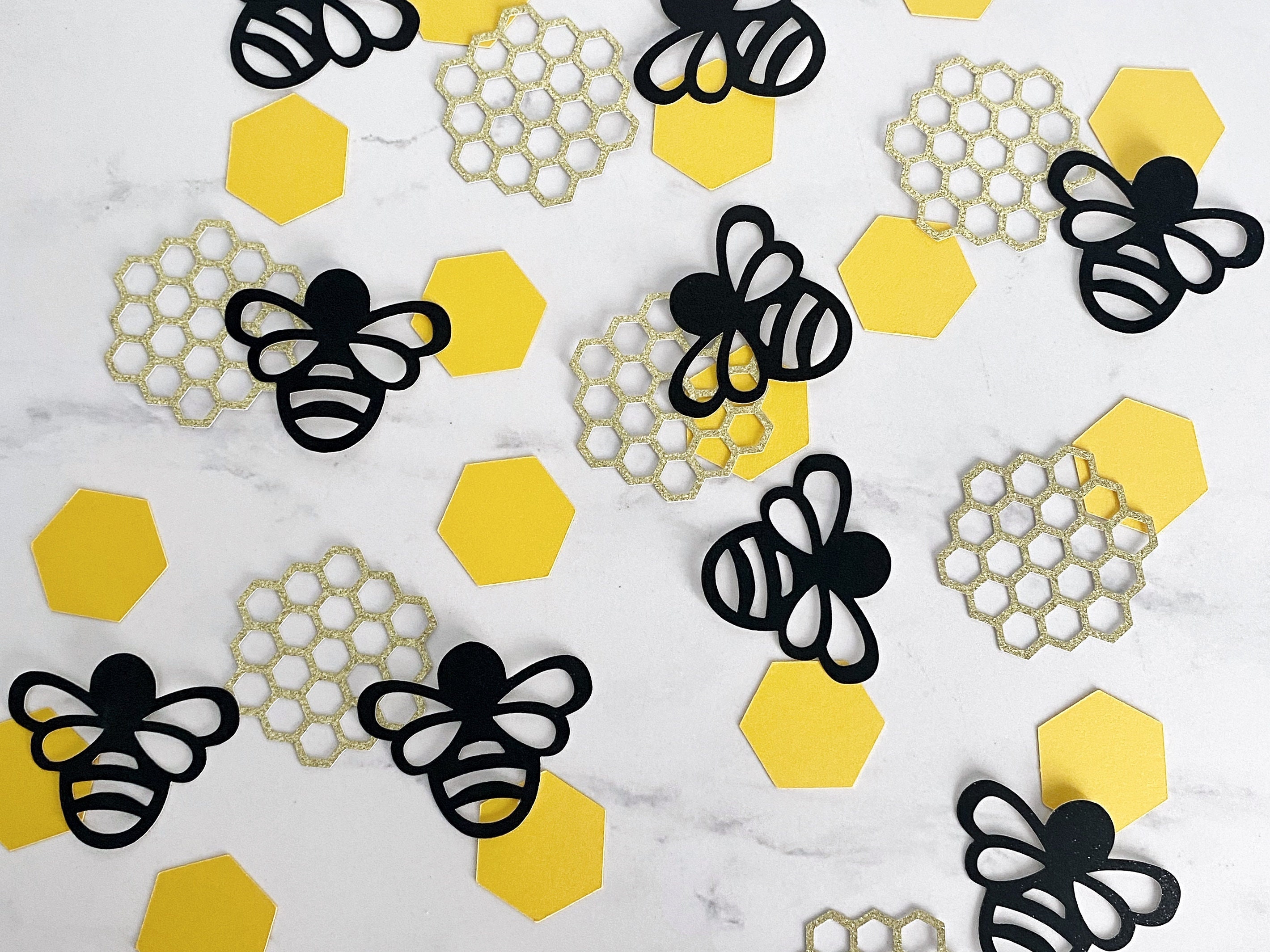 "WHAT YOU'LL GET: * 130 PIECES of confetti (30 glitter bees and honeycombs (15 of each) and 100...
