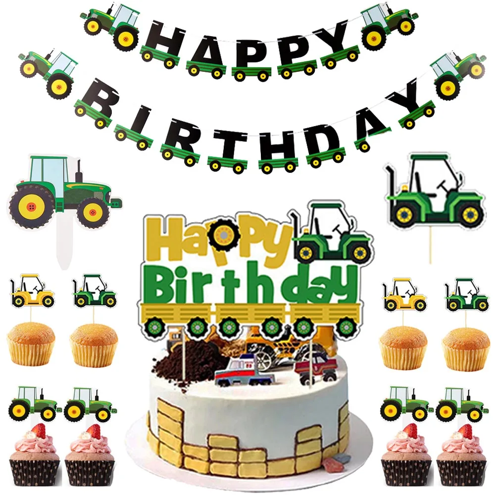 Green Tractor Cupcake Toppers Truck Cars Cupcake Picks Tractor Party Cupcake Toppers for Baby Shower...