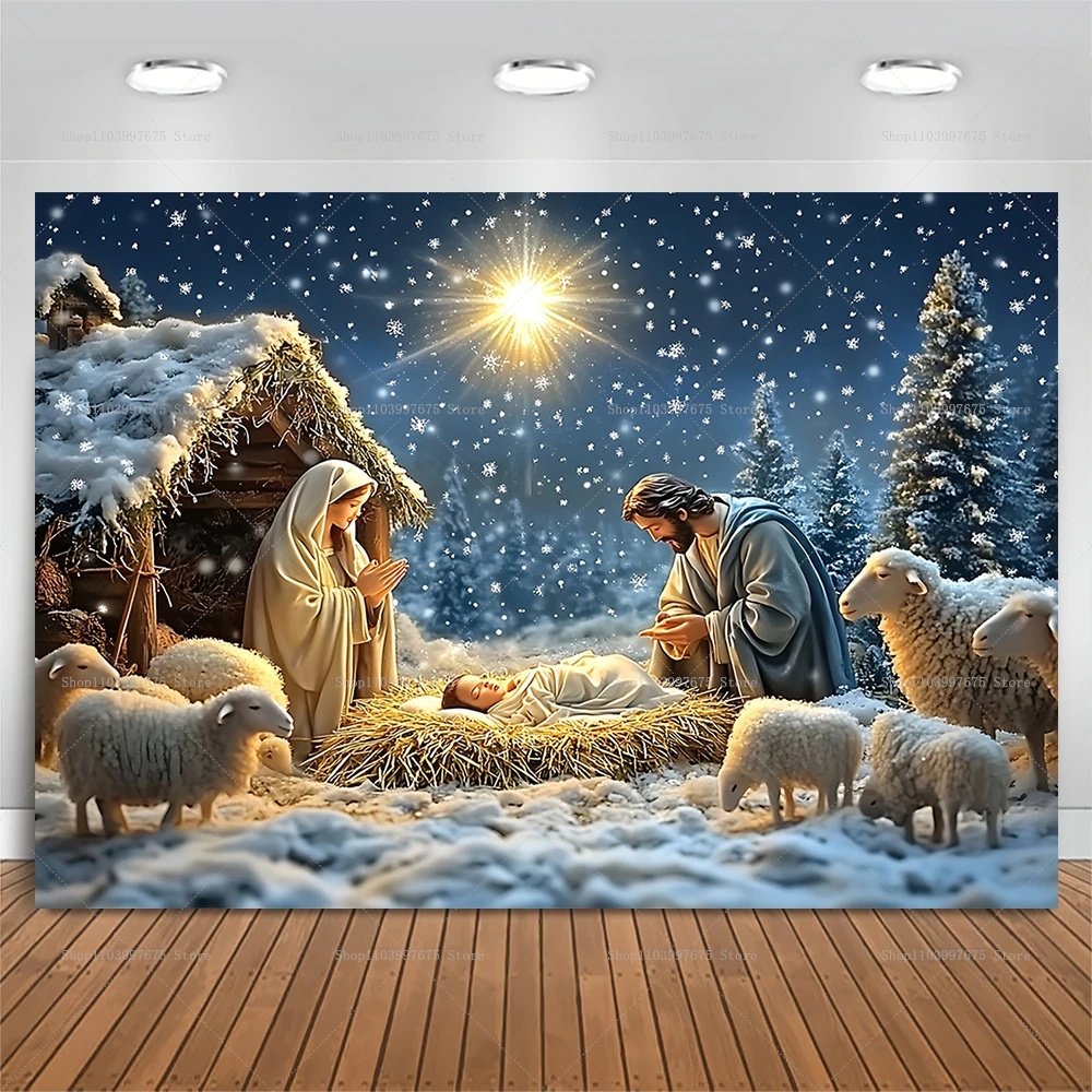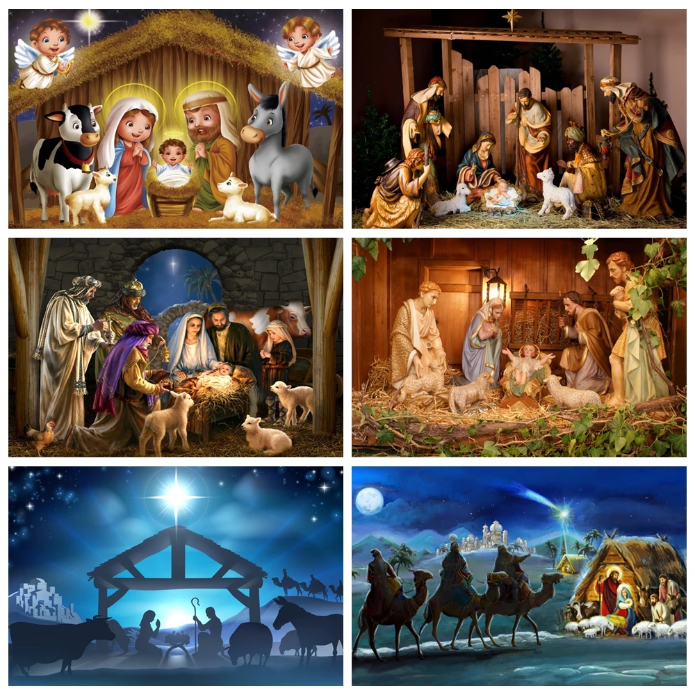 Birth of Jesus Backdrop Nativity Scene Night Holy Family Cross Easter Baby Christmas Party Photograp...