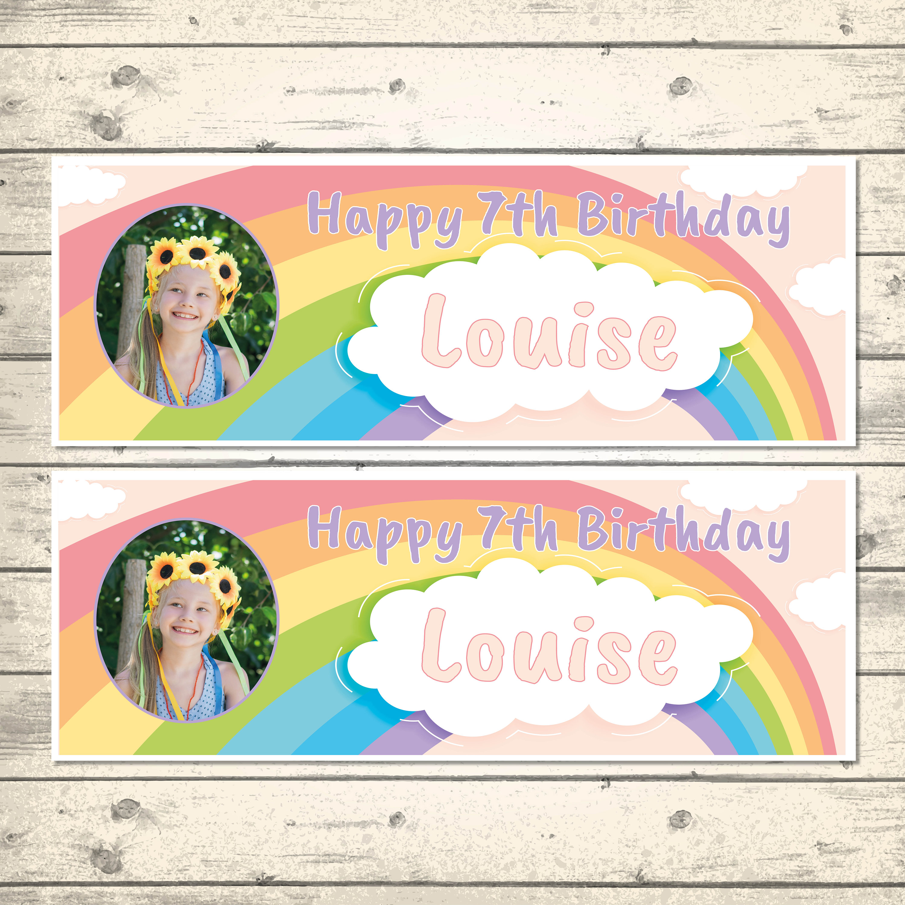 2 Personalised Photo Banners - Rainbow Birthday Banners - Design 2 ...