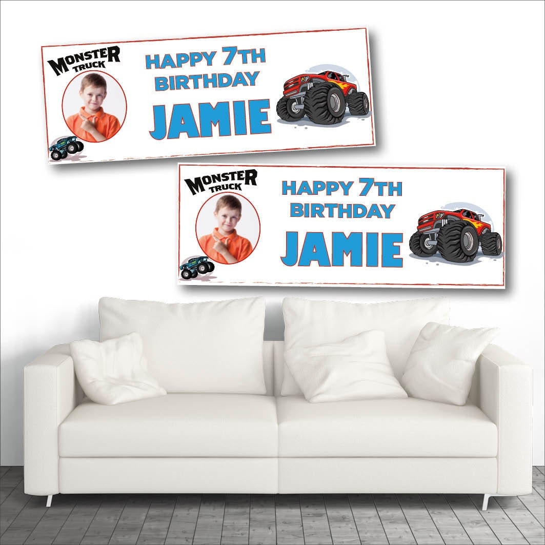 2 Personalised Photo Banners - Monster Truck Birthday Banners - Des...
