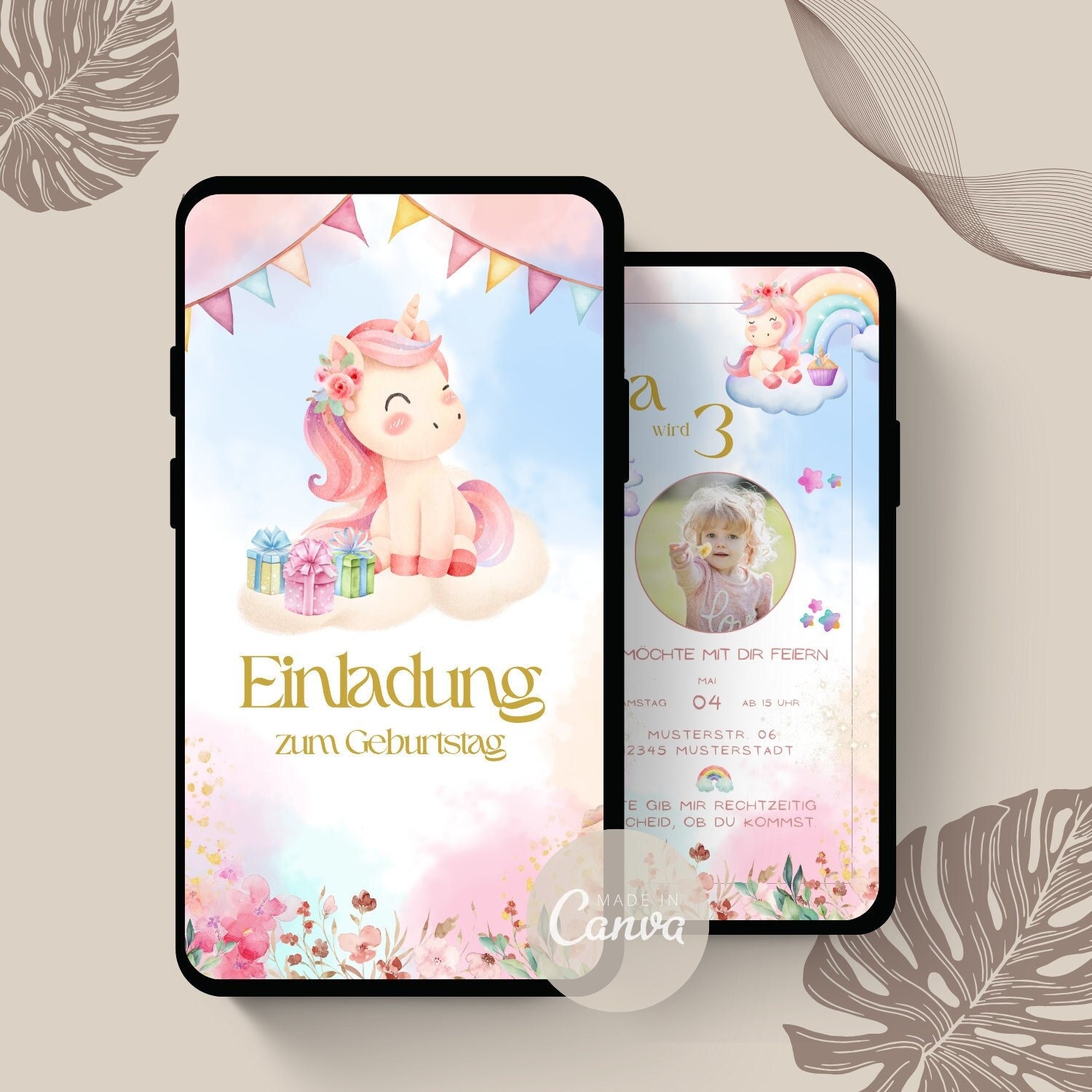 "Celebrate a unicorn birthday party with my digital invitation card. With this customizable mob...