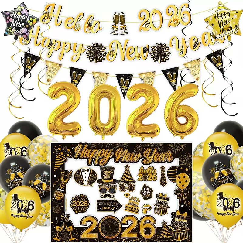 • New Years Eve Party Black and Gold Decorations 2026 Balloon and Ban...
