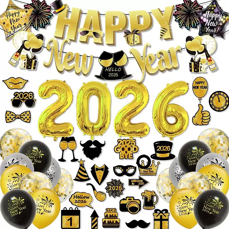 • New Years Eve Party Black and Gold Decorations 52PCS 2026 Happy New...