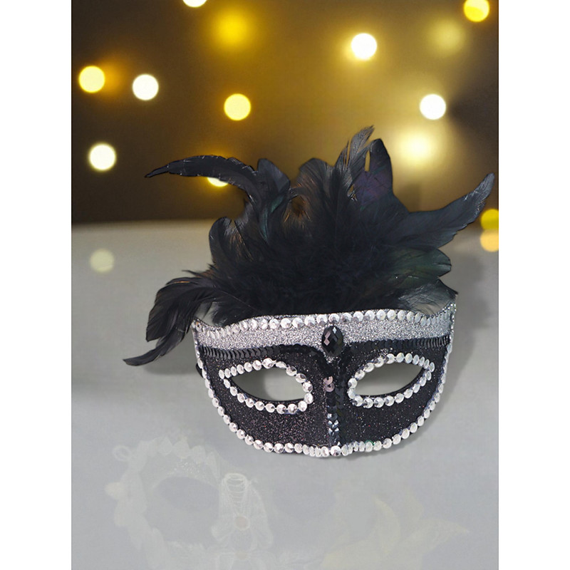 Women's Black Feather Masquerade Mask - Elegant Rhinestone Party Ma...