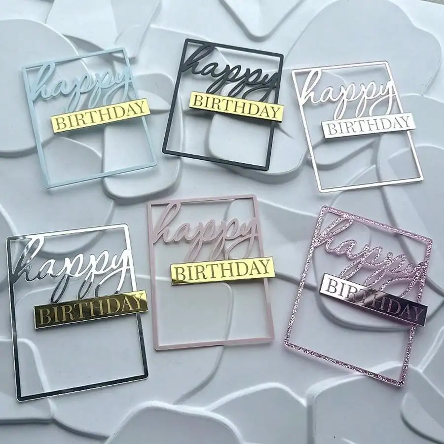 5pcs/1PC Happy Birthday Square Acrylic Cake Topper Gold Silver Rose Gold Birthday Party Cake Decorat...
