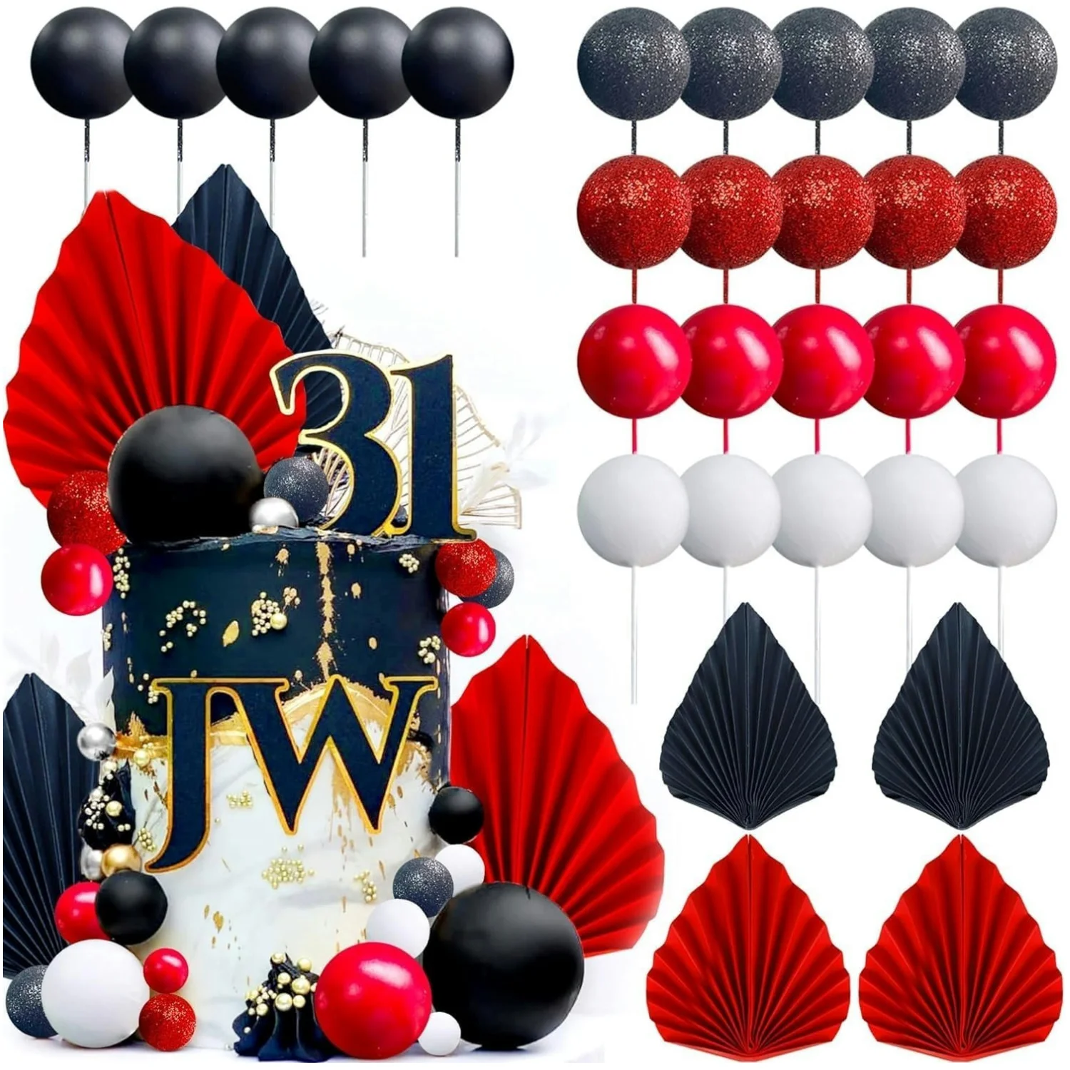 29Pcs Black Red Balls Cake Decoration Red Cake Decoration Black Cak...