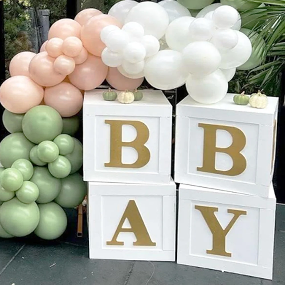 4Pcs Baby Shower Boxes Party Decoration Gold Letters White BABY Balloons Boxes Blocks for Birthday B...