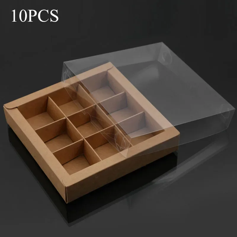 10Pcs 9 Grids Kraft Paper Gift Box With Clear Window Chocolate Candy Cookie Paper Boxes Packaging Fo...
