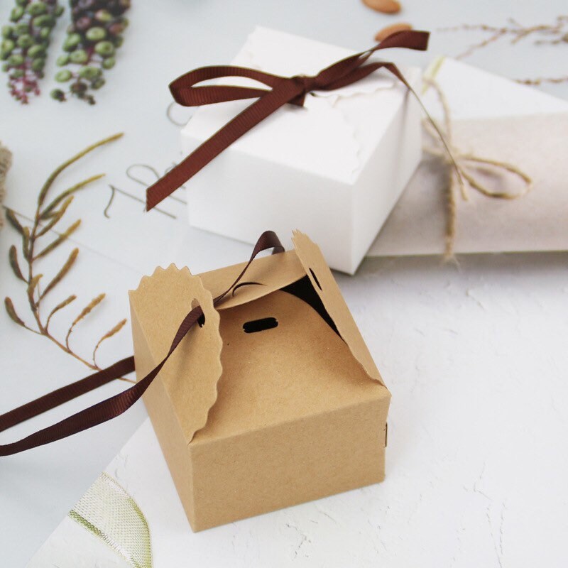 150pcs Kraft or White Scallop Wedding Party Favor Box with Ribbon C...