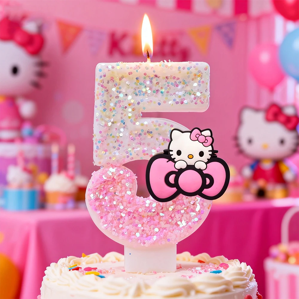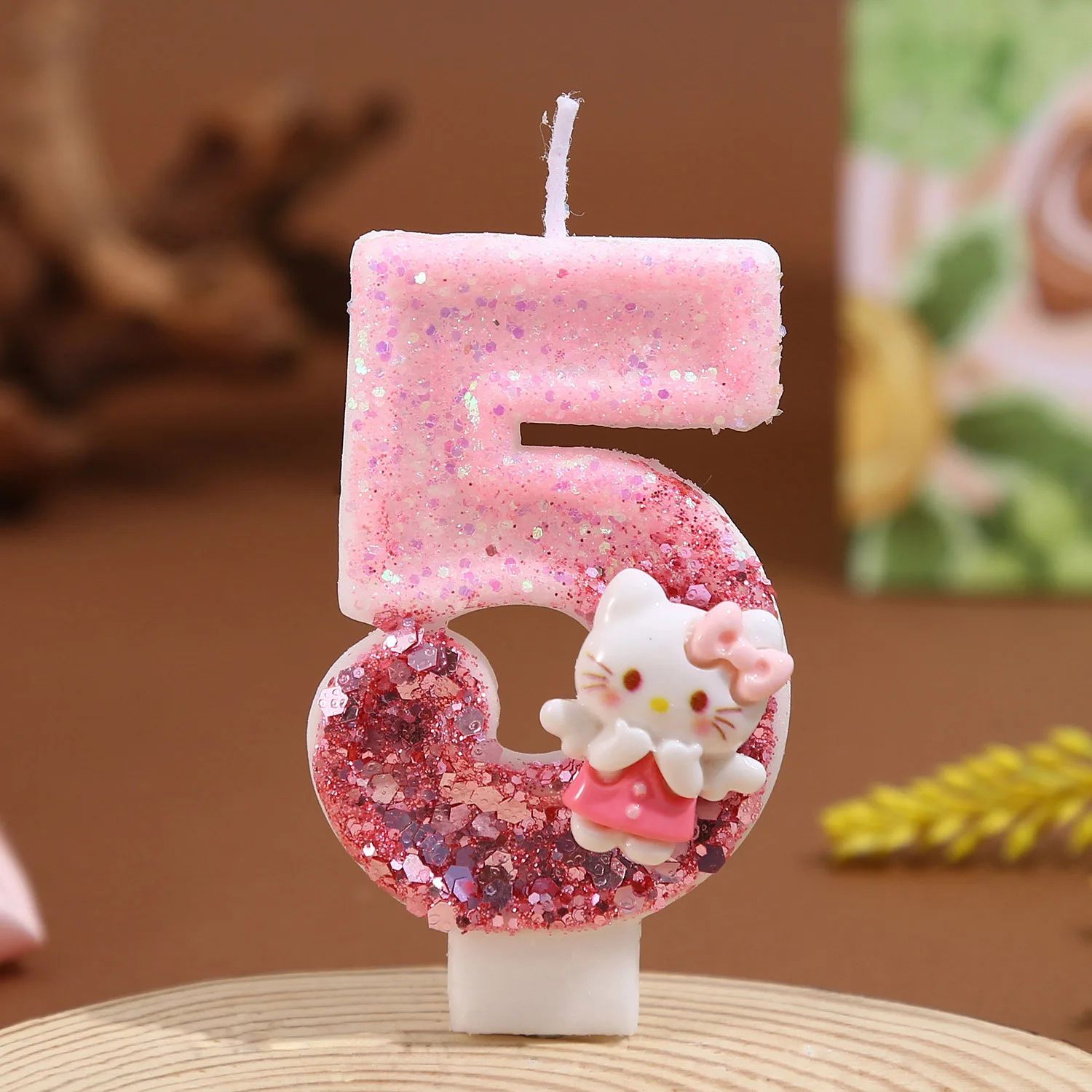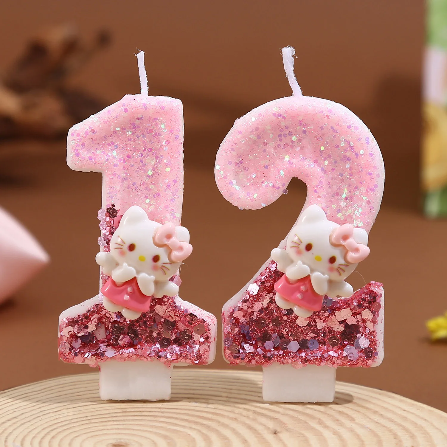 Hello Birthday Kitty Candle 0-9 Pink Glitter Number Cake Toppers Cartoon Pattern Digital Candle Anni...