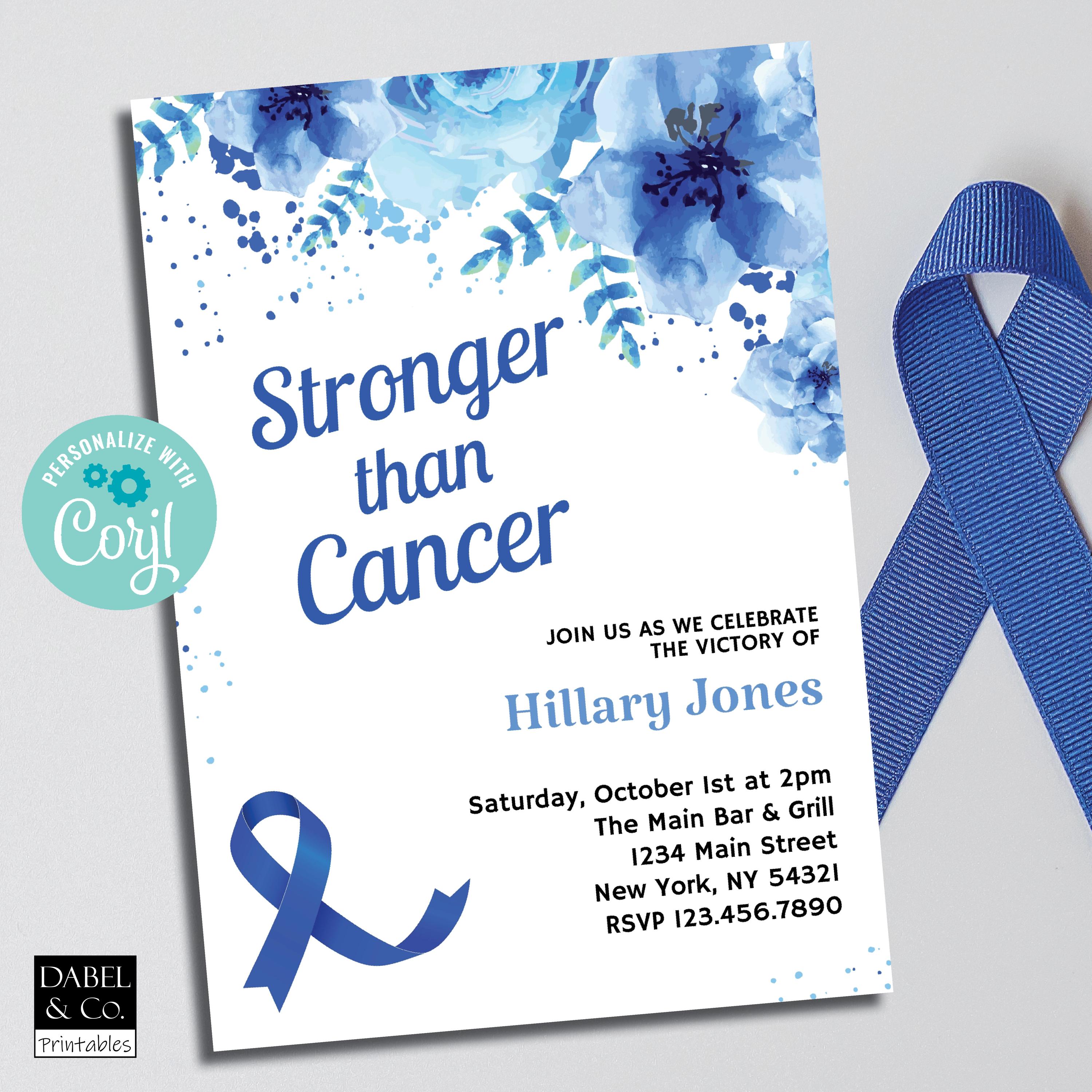 "Colon Cancer Survivor Invitation, No More Cancer Party Template, Printable Invite, Instant Dow...