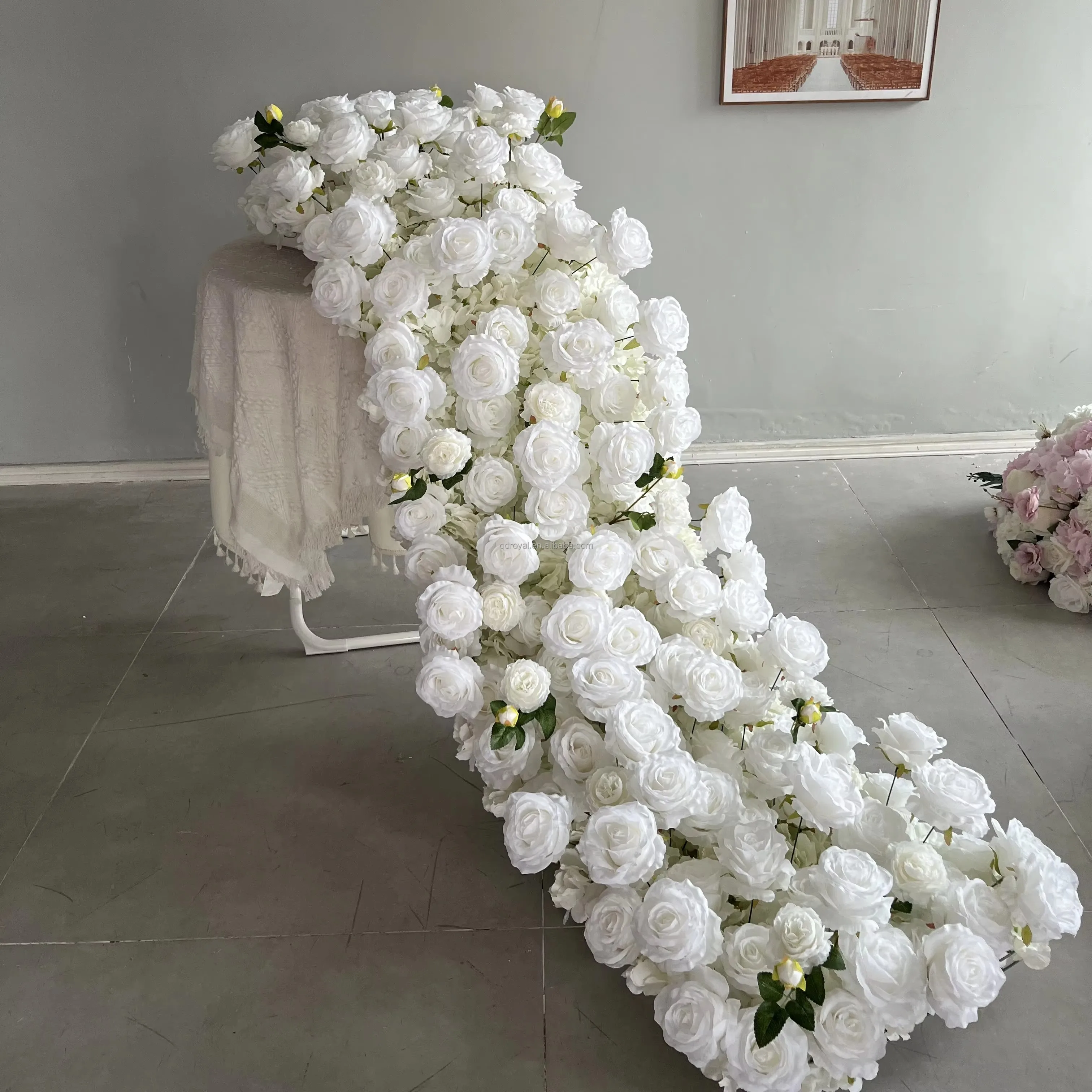 Wedding Artificial White Flower Runner Wedding Aisle Flower Table R...