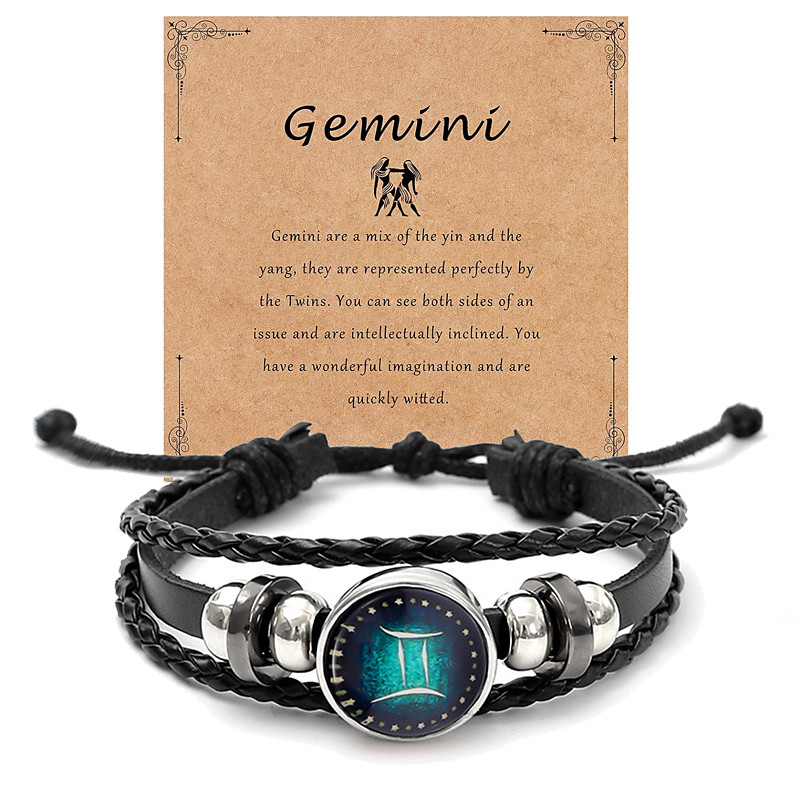 Multilayer Constellation Zodiac Leather Bracelet Handmade Woven Zod...