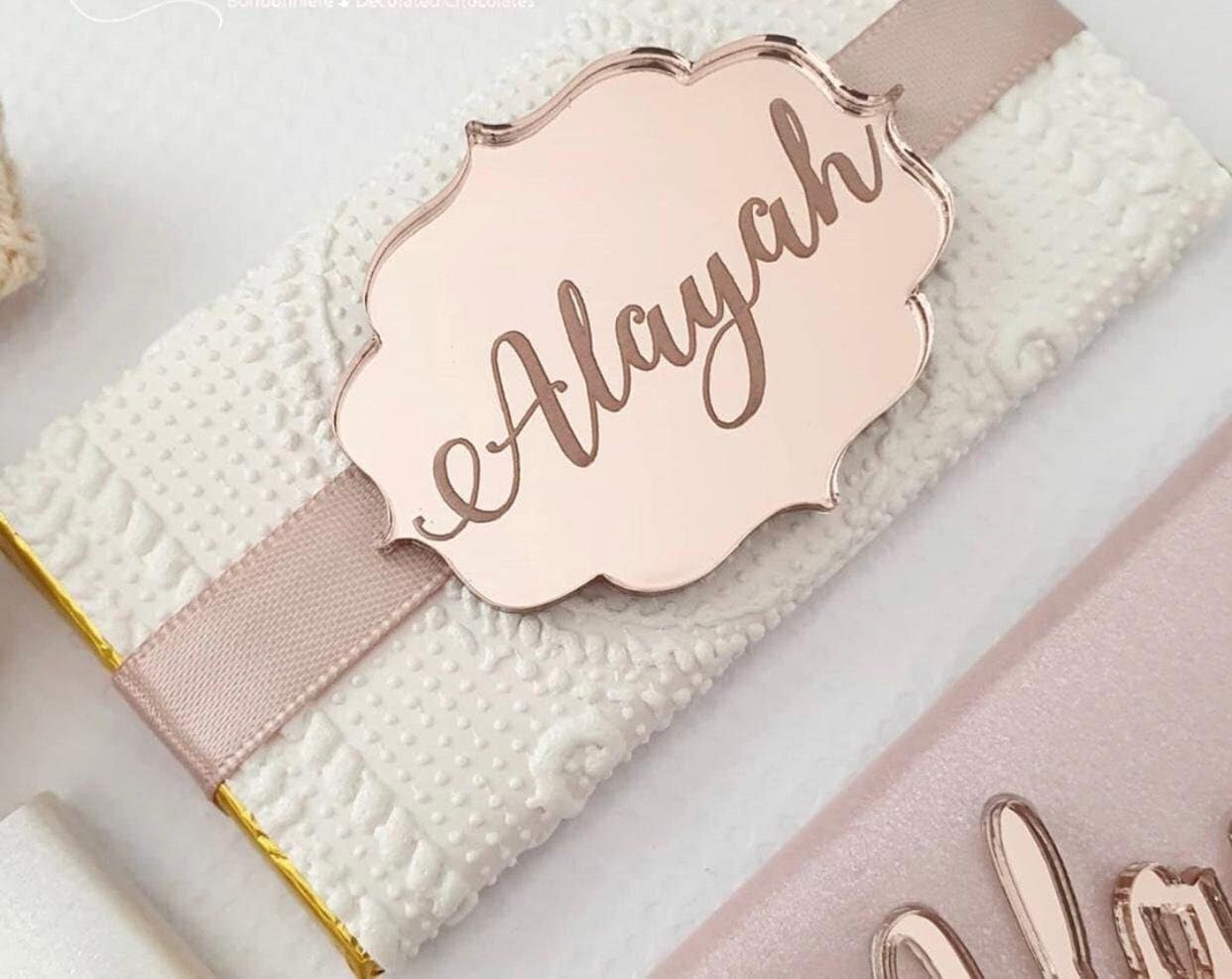 "Acrylic Mirror Tag, Mirror NameTag, Wedding Name Tag, Personalized Tag, Custom Mirror Tag, Bap...