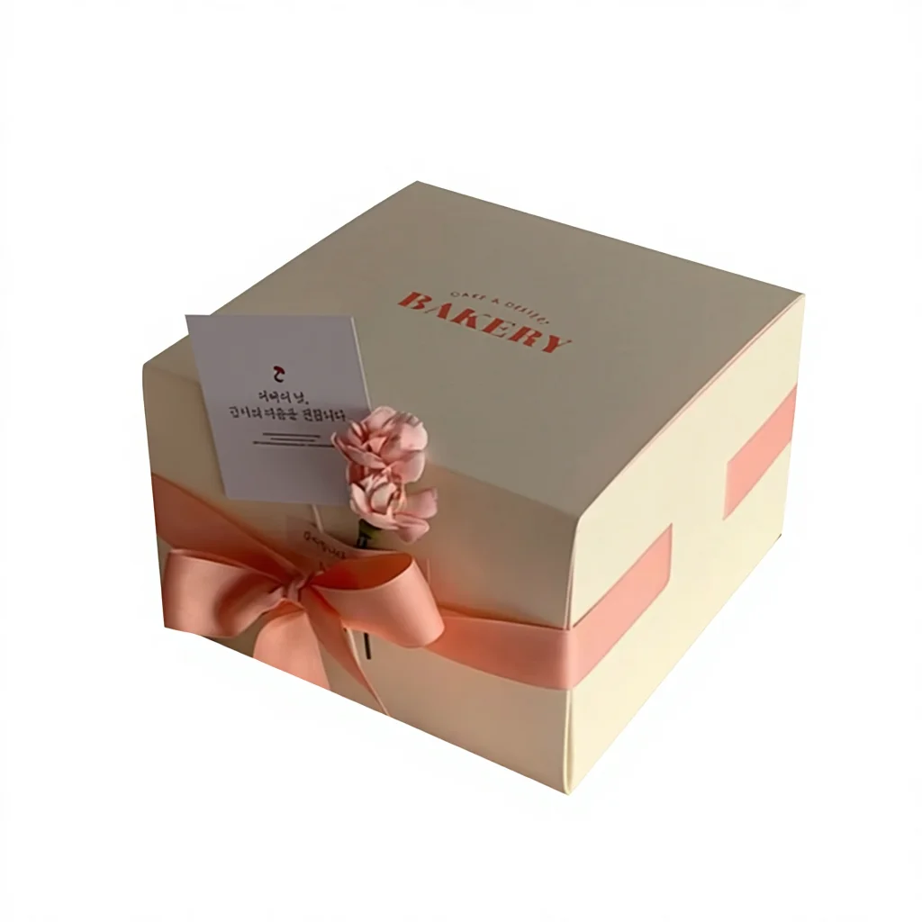 Custom Size Logo Designs Food Grade Cardboard Cake Box with Silk Ri...