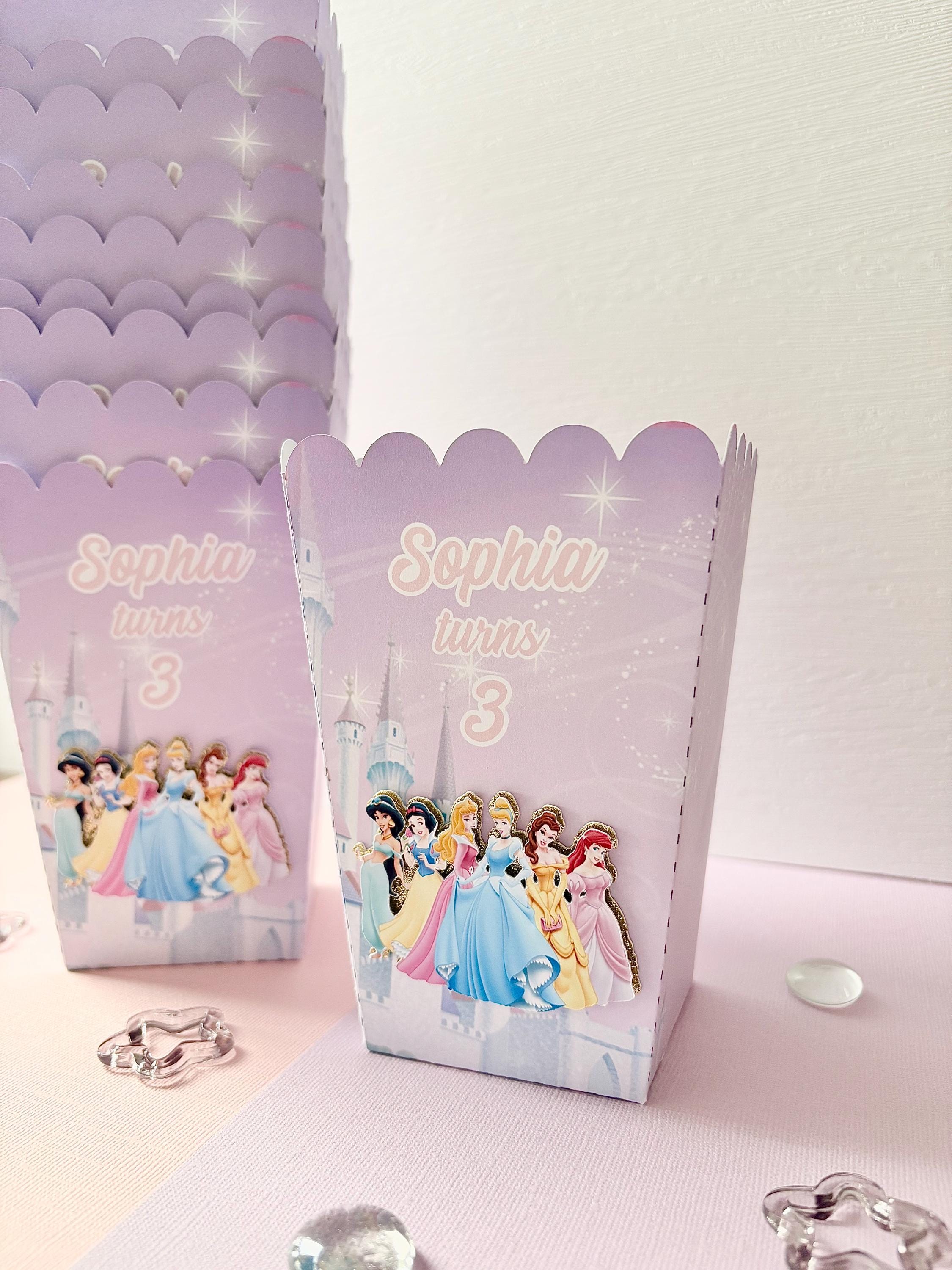 6 Popcorn personalised boxes, Princess party treat boxes, wedding t...