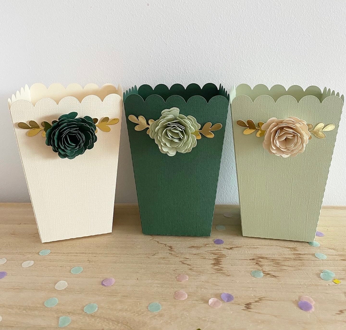 Lovely handmade popcorn treat boxes, ideal to use to put little treats in in weddings, baby showers,...