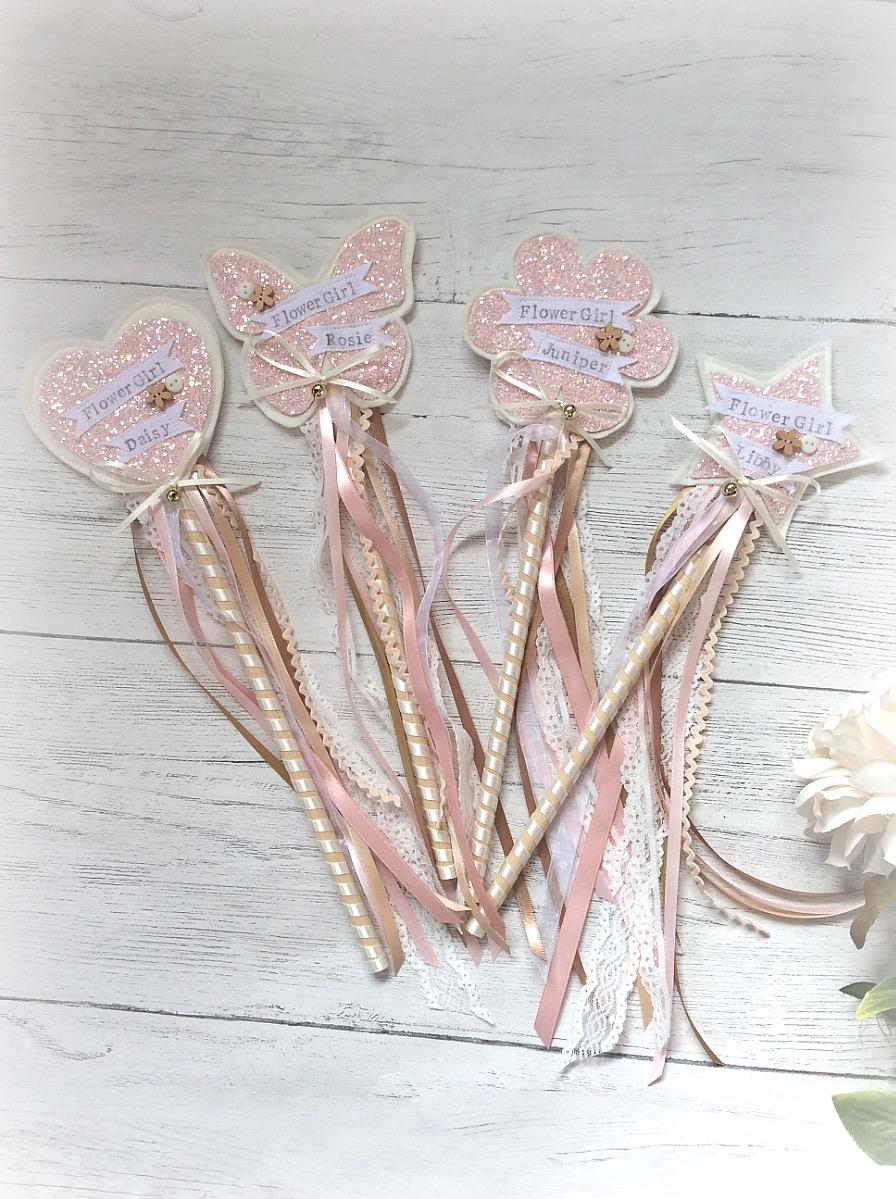 Personalised Blush Wedding Wands, Flower Girl Wand - Blush Glitter ...