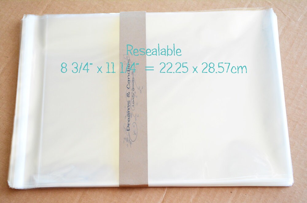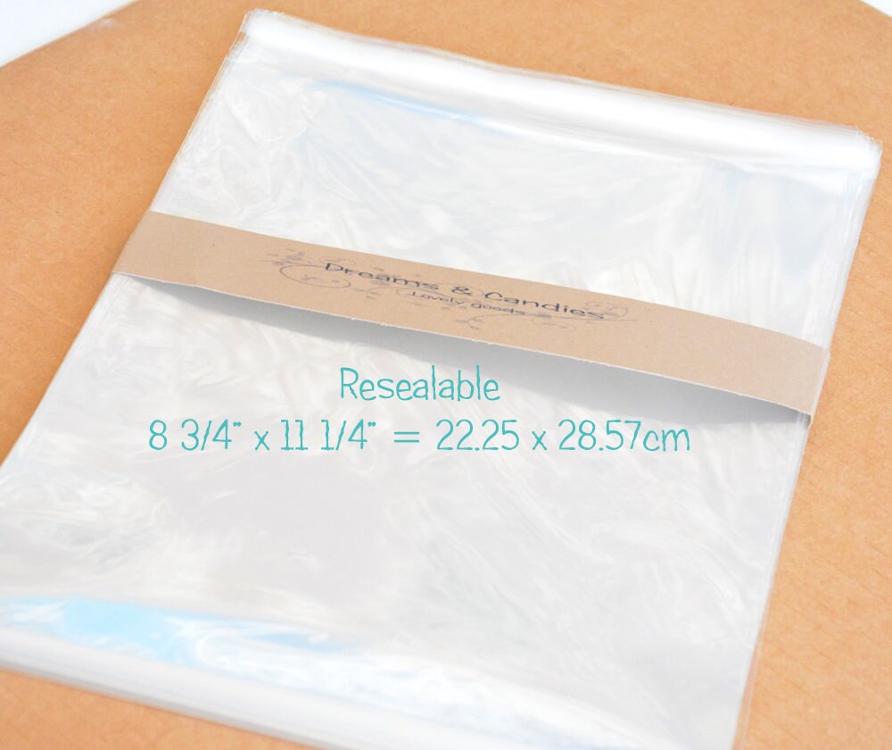 "100 Resealable Cello bags size 8 3/4x11 1/4\" -Transpare...