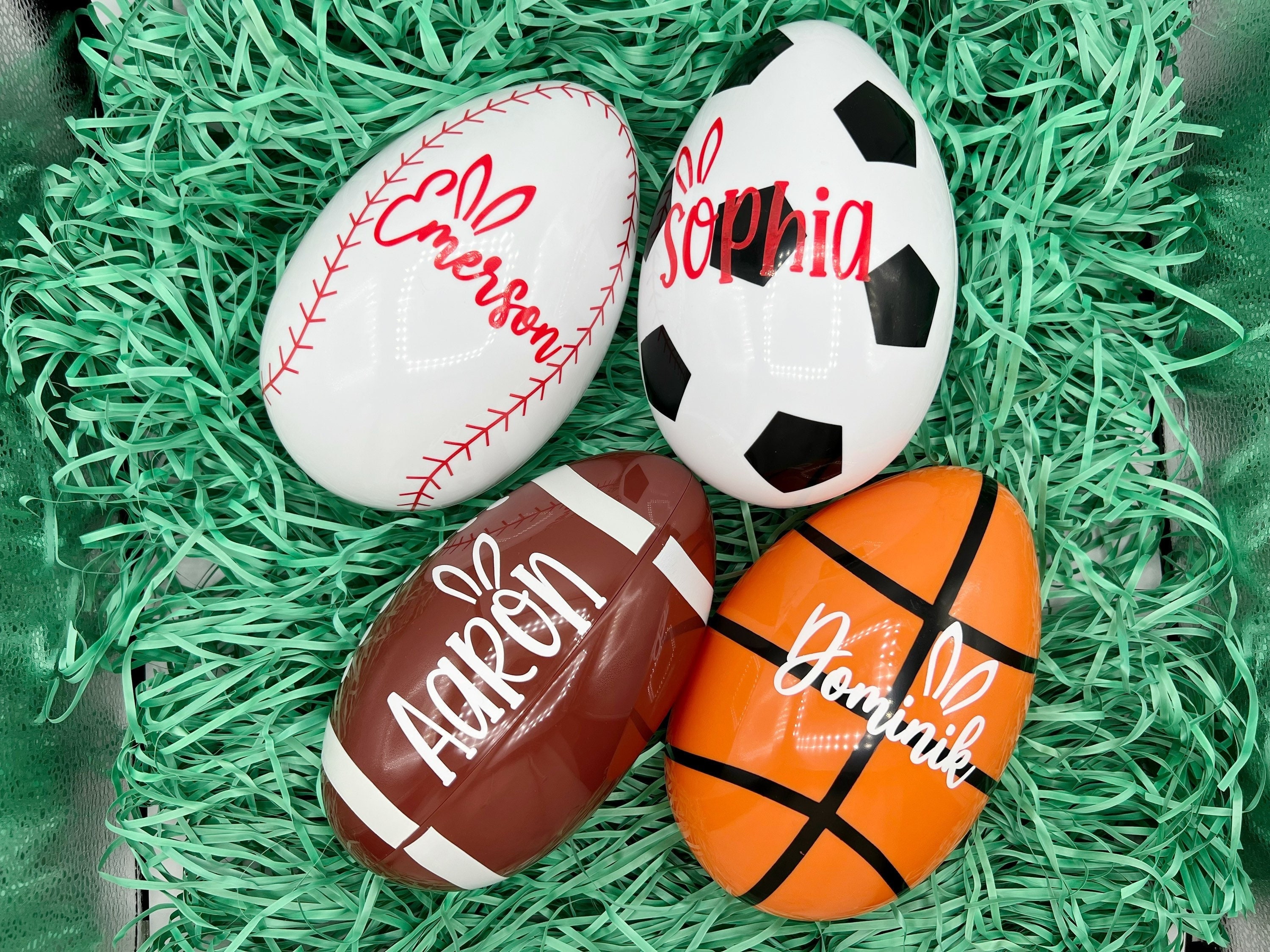 "Your favorite sport fans will feel EGGstra special this Easter with a Personalized Jumbo Sport...