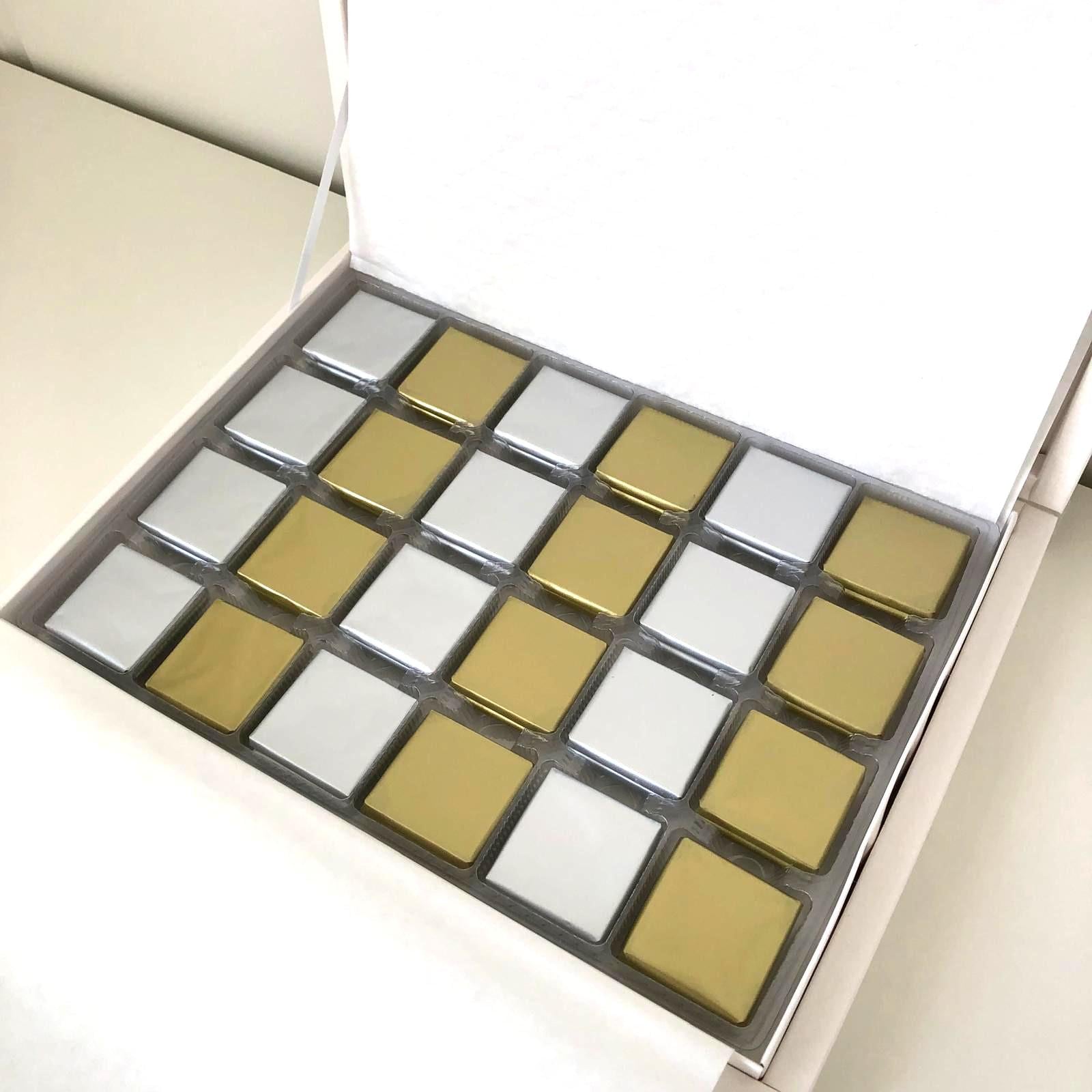 Boxes cannot be selected for chocolate orders of 50 pieces and under. Almond sugar will be added acc...