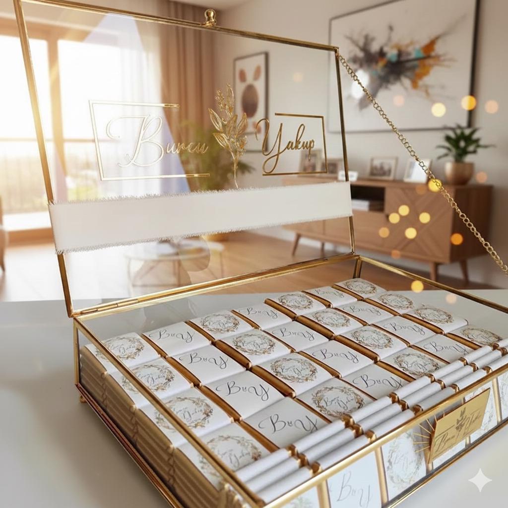 Gold Chocolate Wedding Favors, Glass Box Chocolate, Chocolate For G...