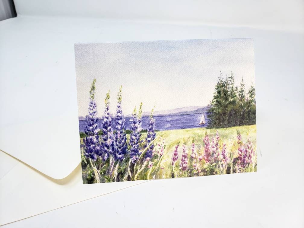Maine Lupine Notecards Maine notecards Maine gift Maine painting lu...