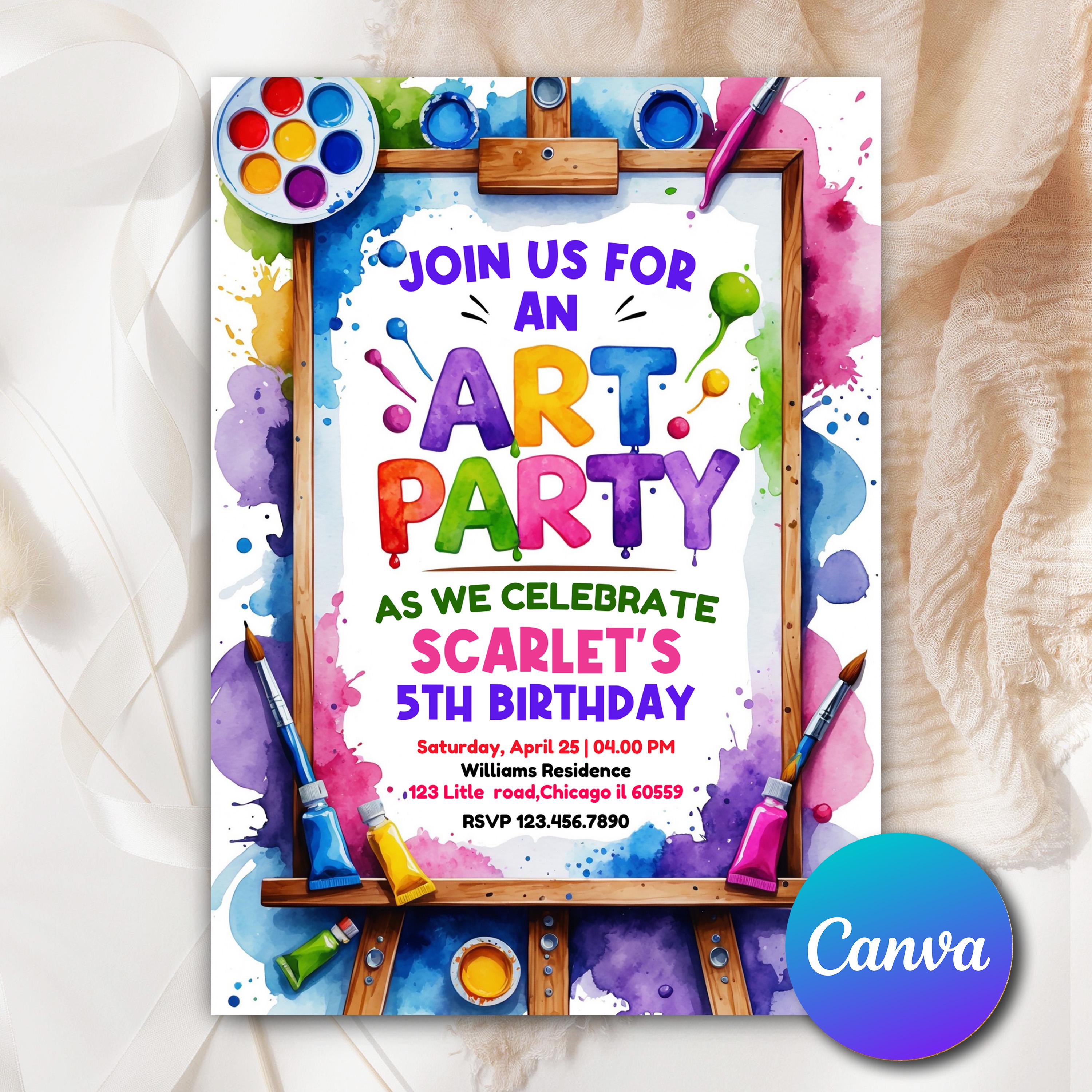 "Art Birthday Party Invitation, Painting Invite, Art in Party Birthday Party Invite, Editable A...