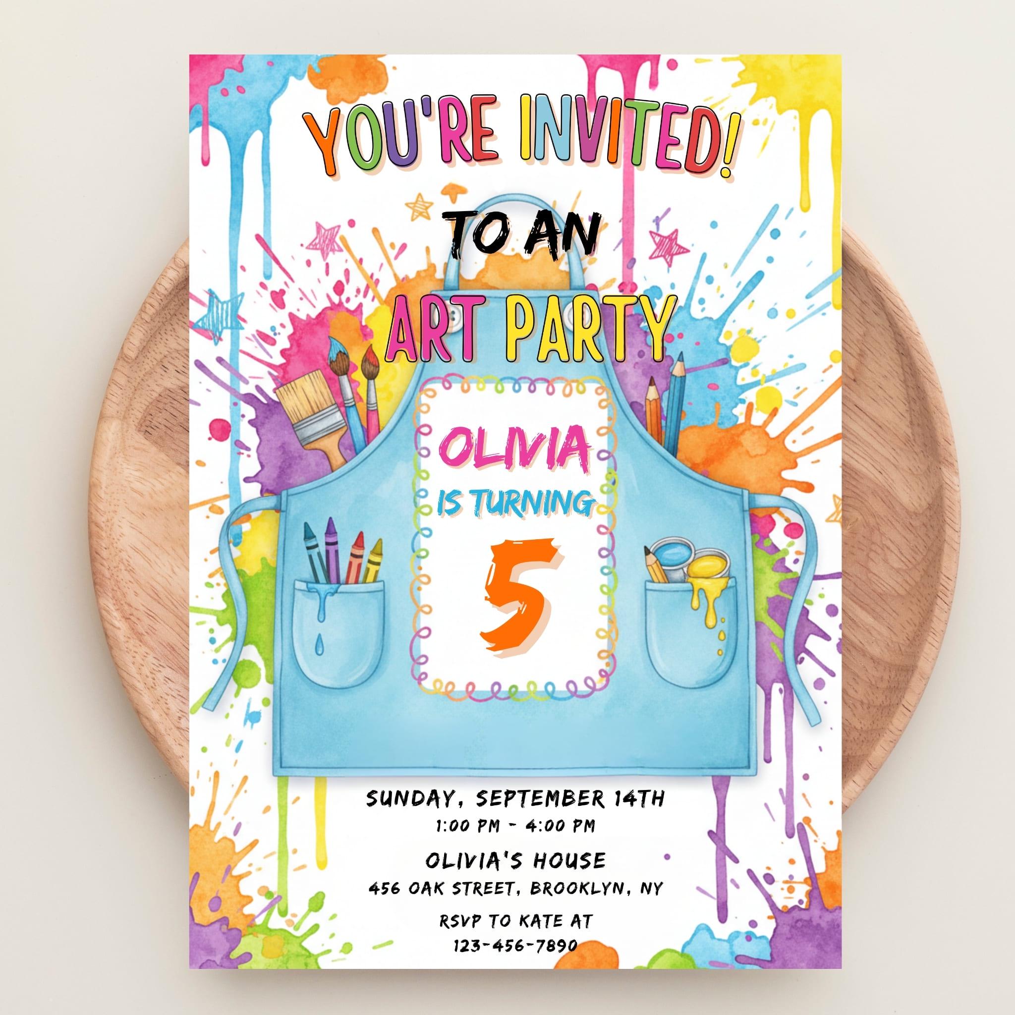 Art Birthday Party Invitation, Painting Party Invitation, Art in Party Birthday Party Invite, Dress ...