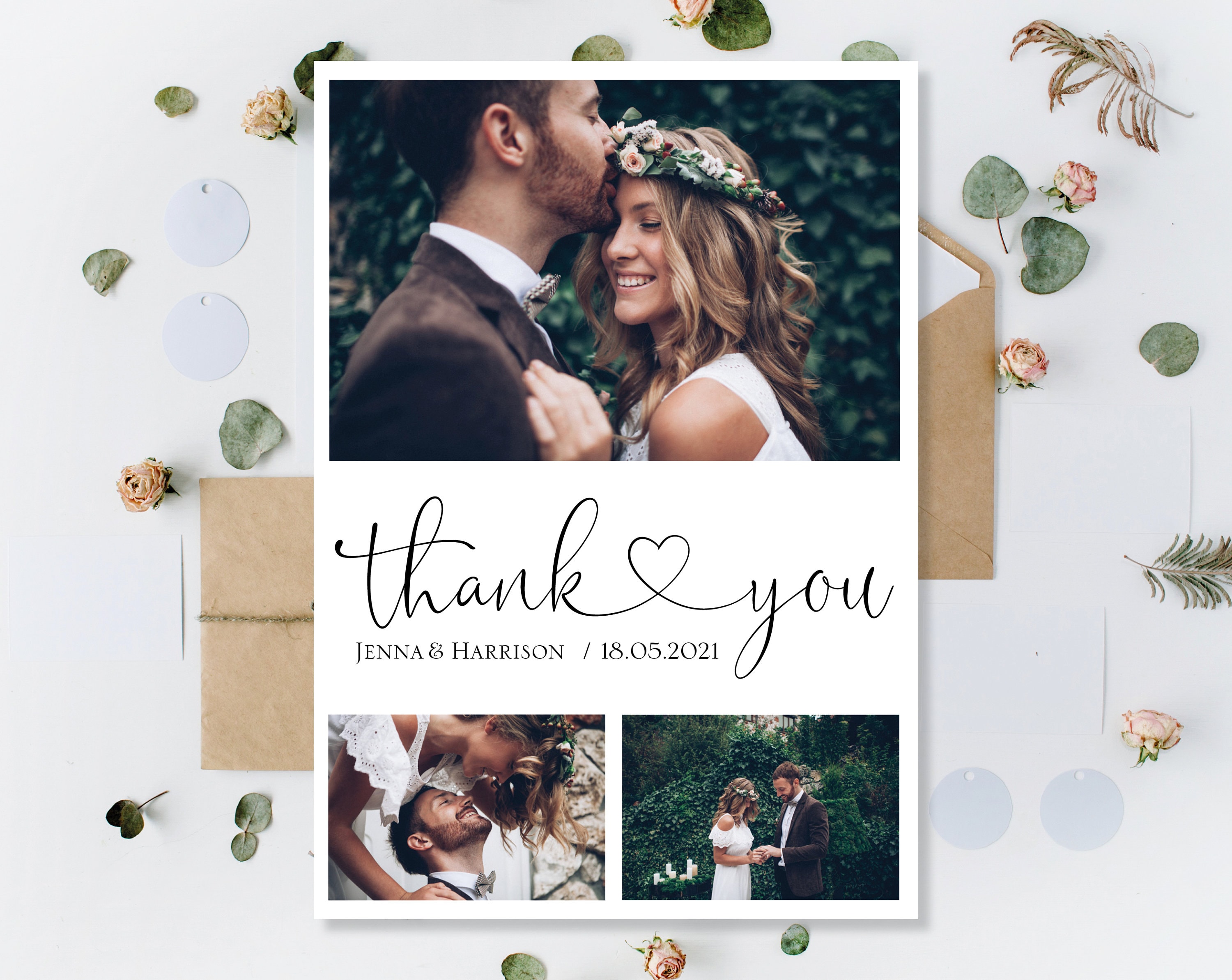 Printed Wedding Thank You Cards, Personalised Thank You cards Weddi...