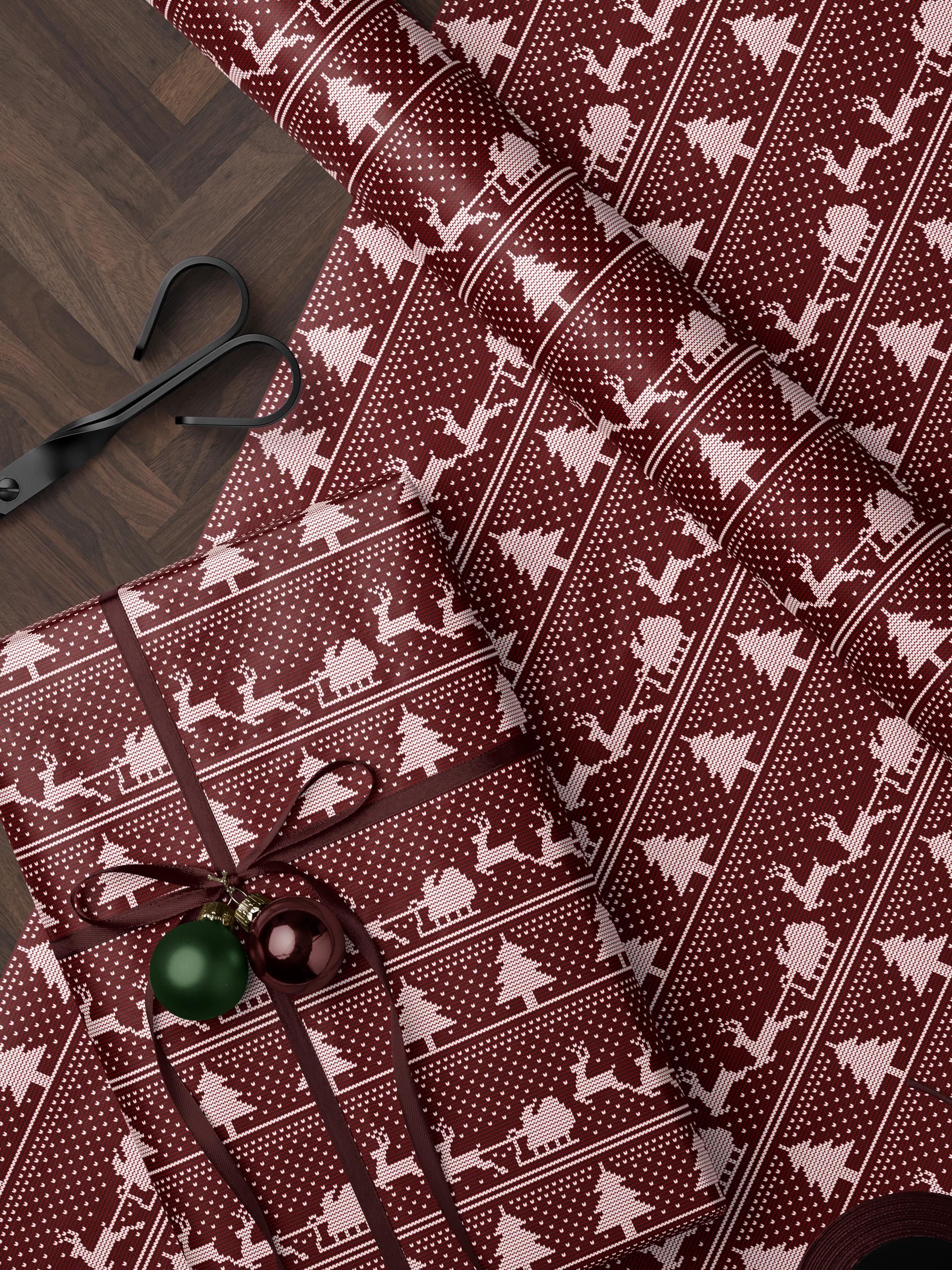 Christmas Sweater Wrapping Paper Santa Sleigh and Reindeer Gift Wra...