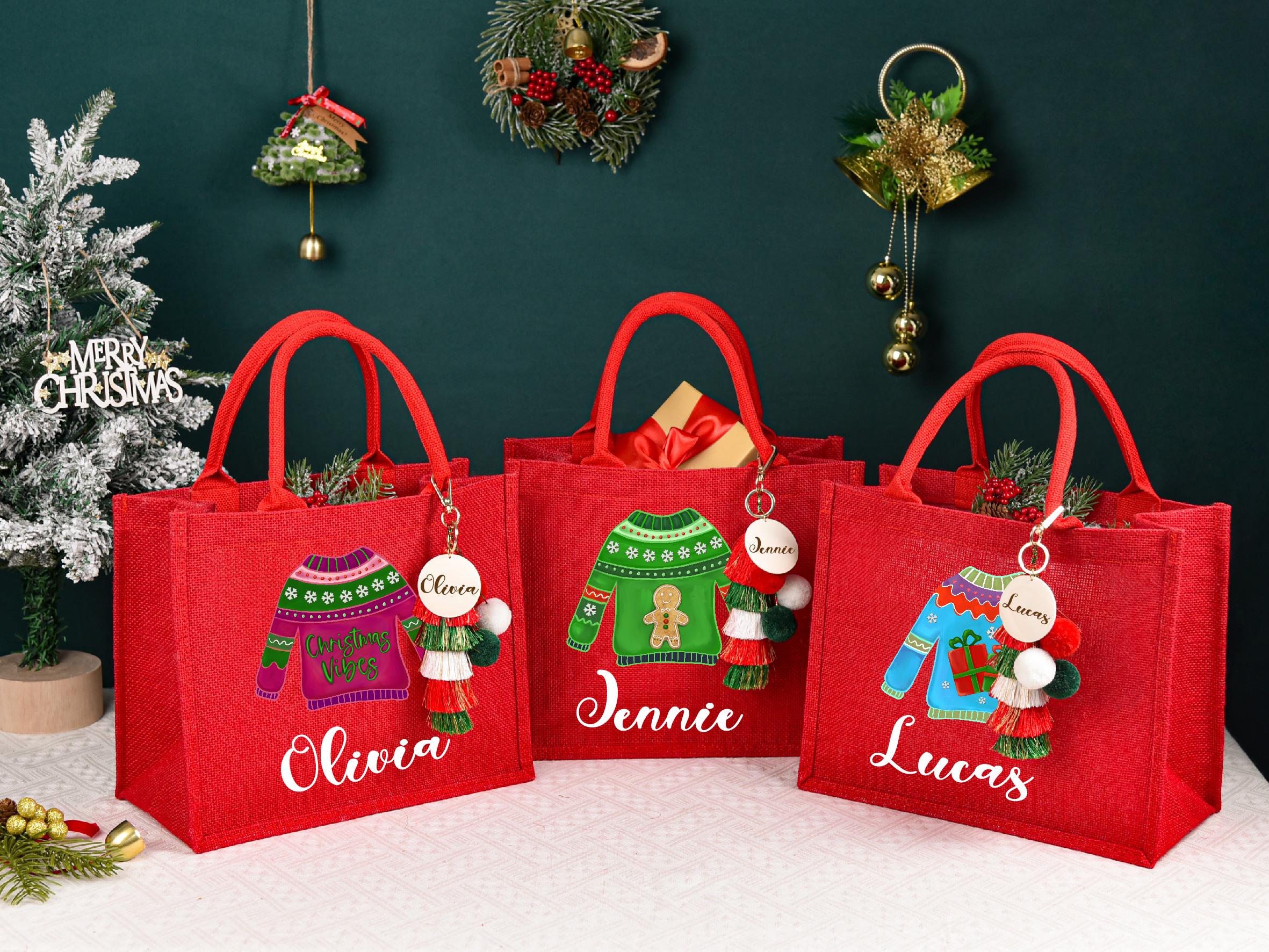 2026 Personalized Ugly Sweater Christmas Gift Bags,Red Xmas Gift Ba...
