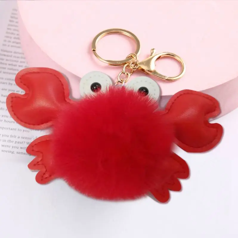Promotion Crab Pom Pom Keychain Artificial Fluffy Pompoms Crab Keyc...