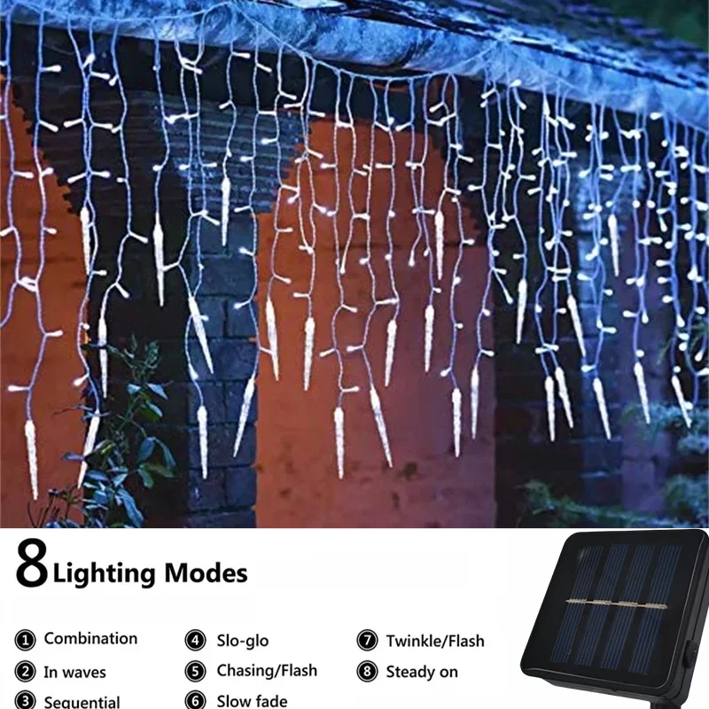 LED Solar lcicle String Lights Outdoor Curtain Fairy Lights 8 Modes...