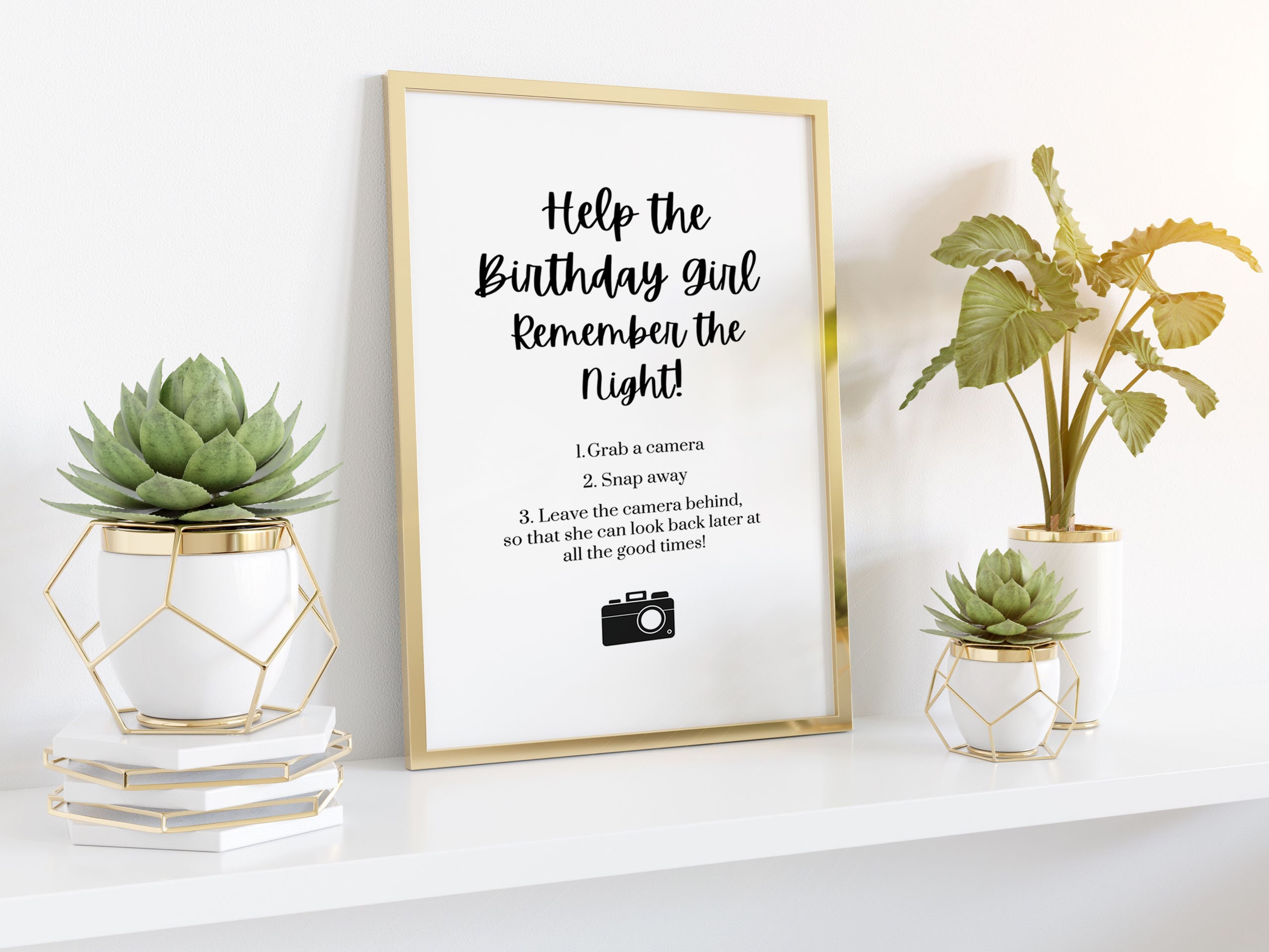 "Help the Birthday Girl Remember the Night- Birthday Disposable Camera Sign - Customize Using C...