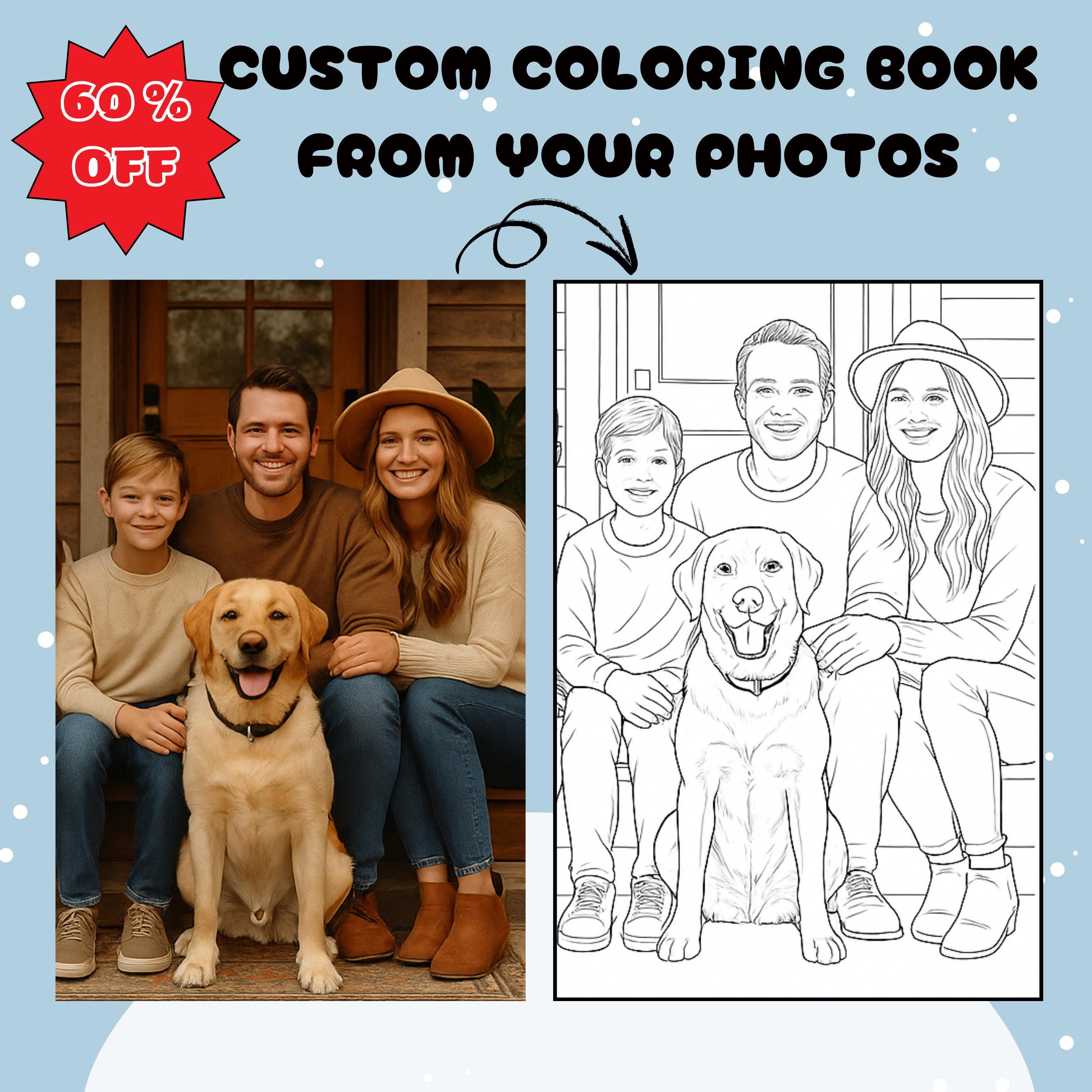 Custom Coloring Book Pages, Personalised Photo To Coloring Page, Digital Custom Printable Coloring B...