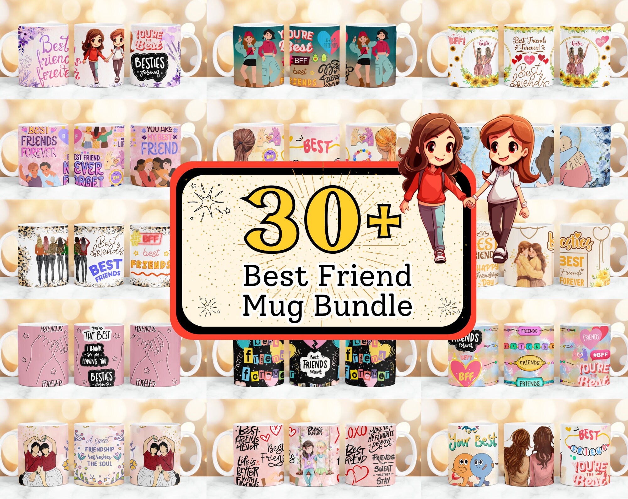 30 + Best Friend Mug Wrap, Besties Mug Wrap, Friend Forever Mug Wrap, 11oz & 15oz Friendship Mug...