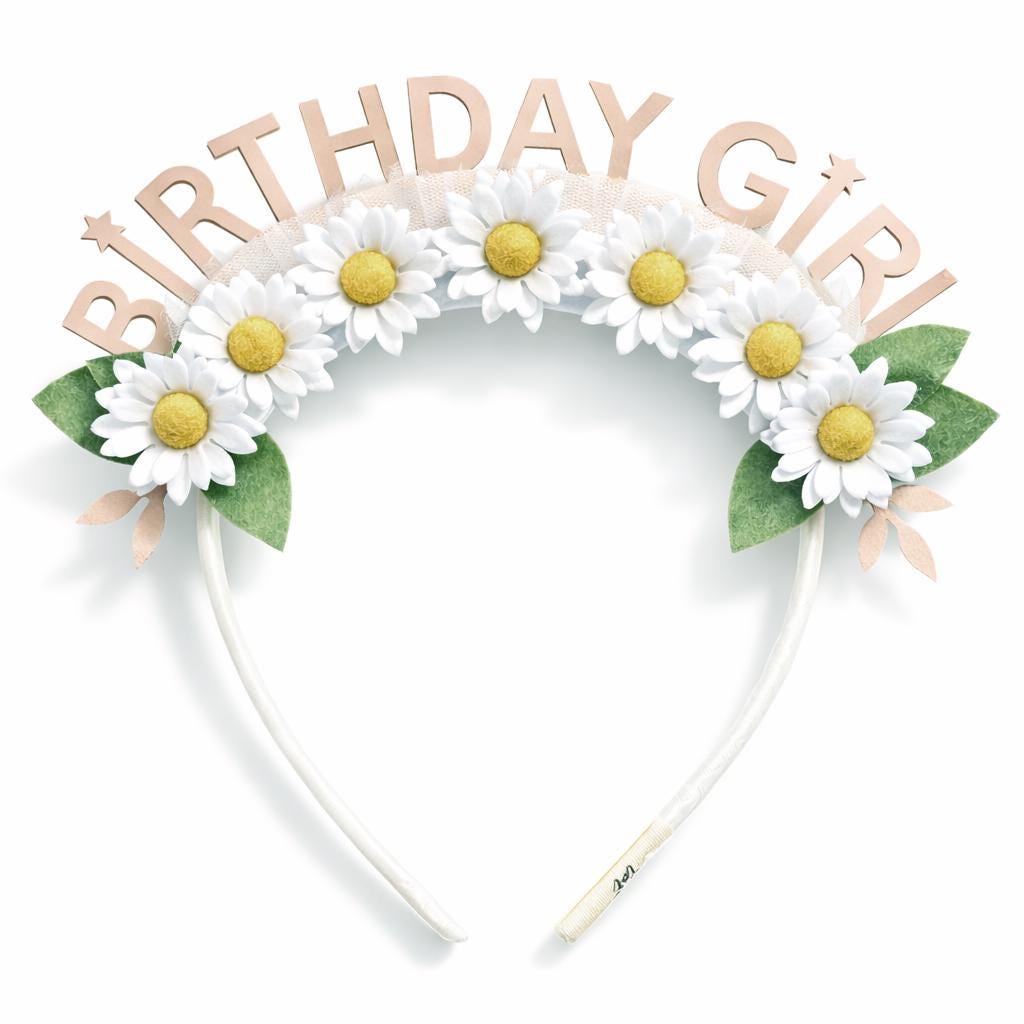 Daisy Birthday Girl Headband, Floral Felt Crown