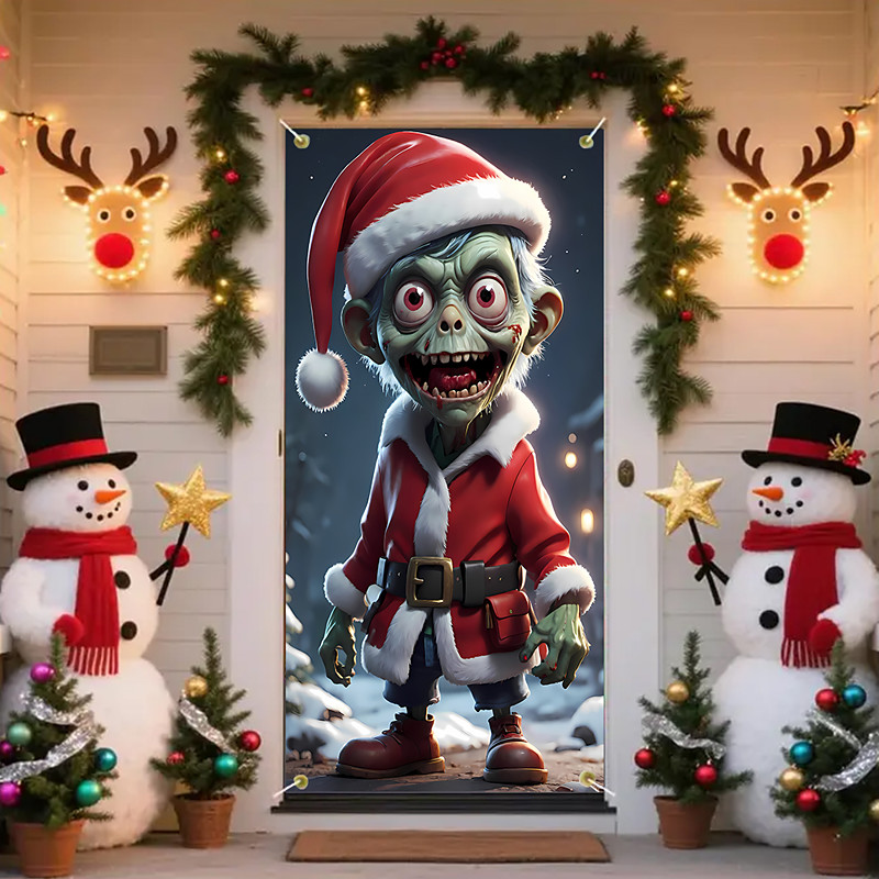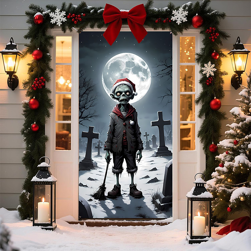 Christmas Posters Door Cover Outdoor Banners Zombies 3D Dark Punk G...