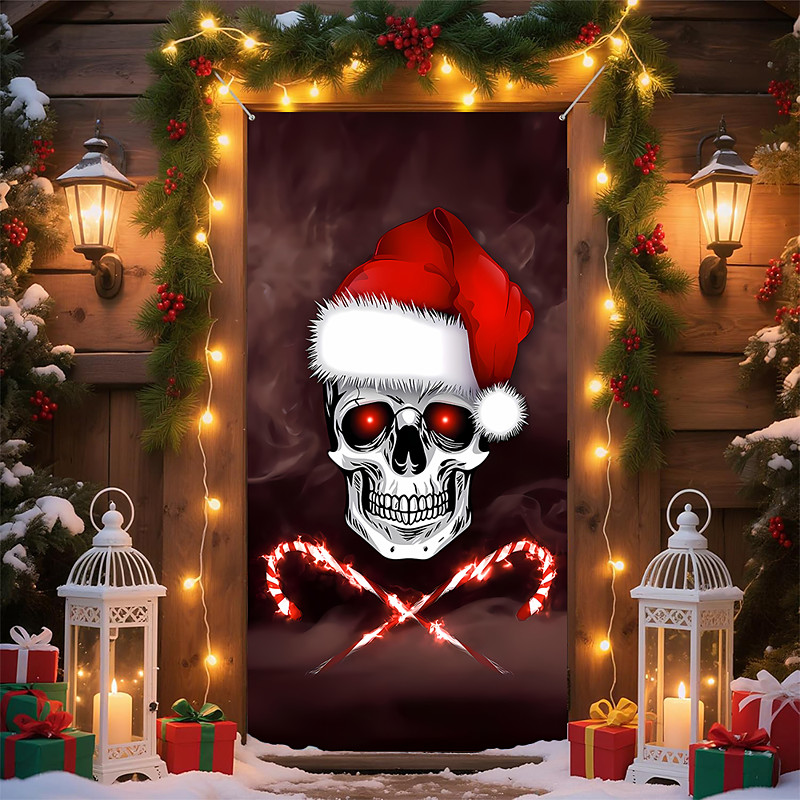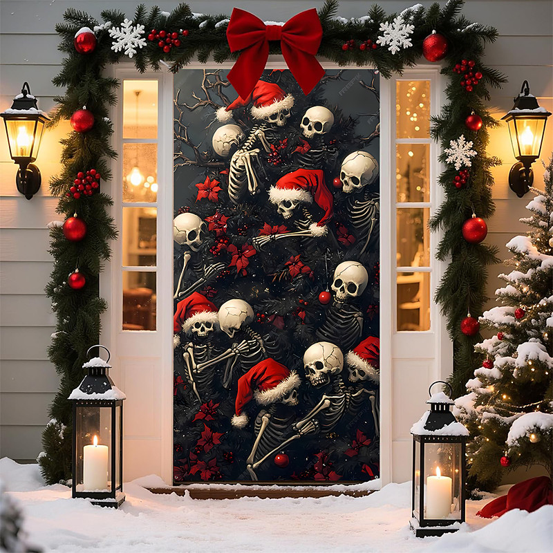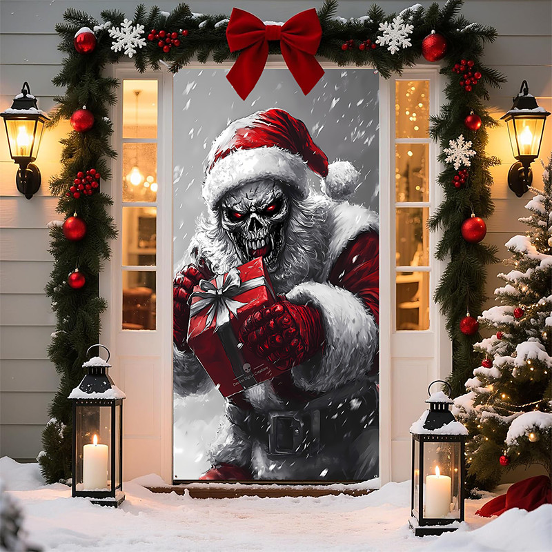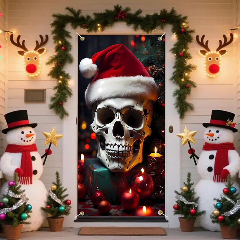 Theme:Christmas,Skull; Type:Posters,Door Cover,Outdoor Banners; Style:3D,Dark Punk Gothic Style; Mat...