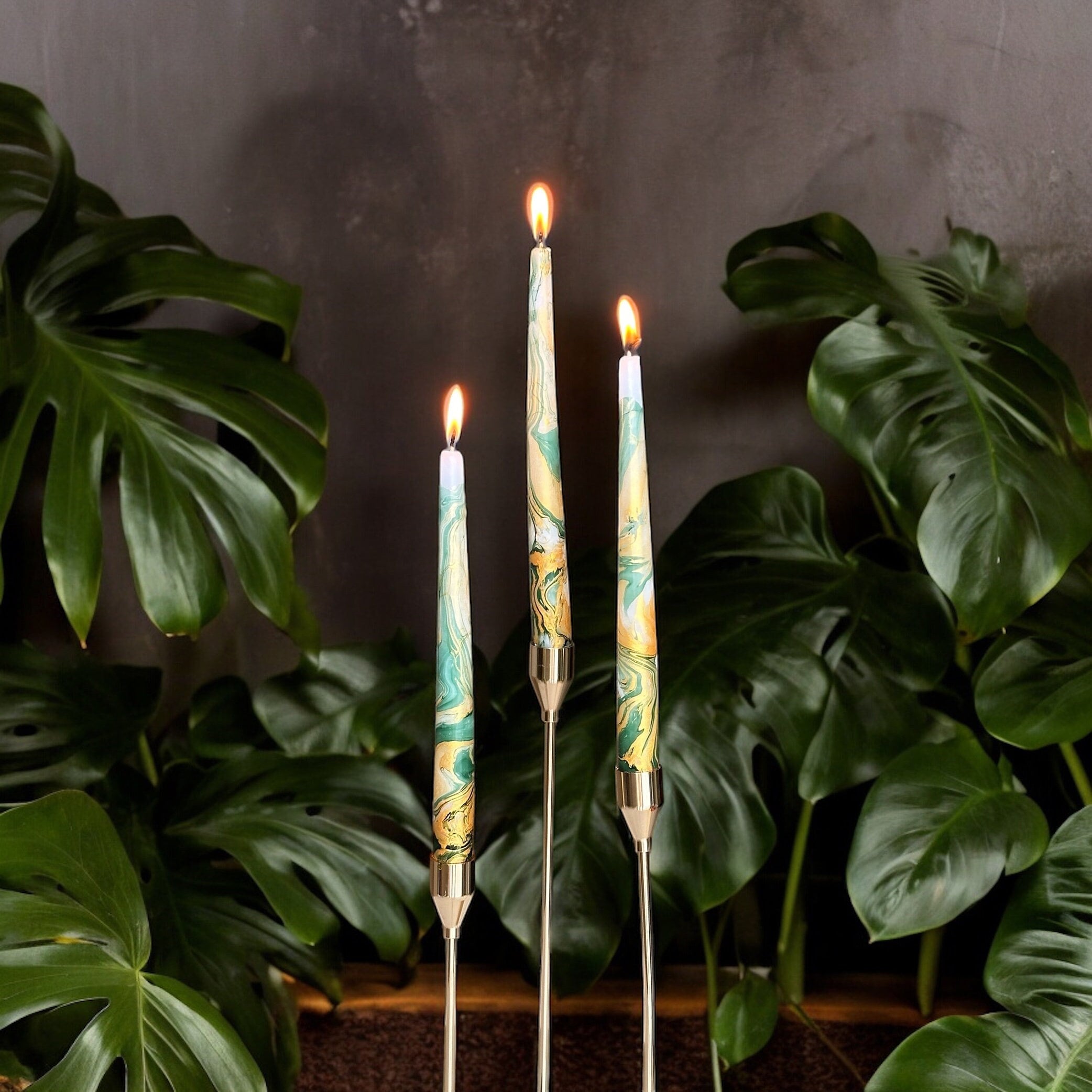 Gold Dark Green metallic marble candles,tall taper dinner candle se...