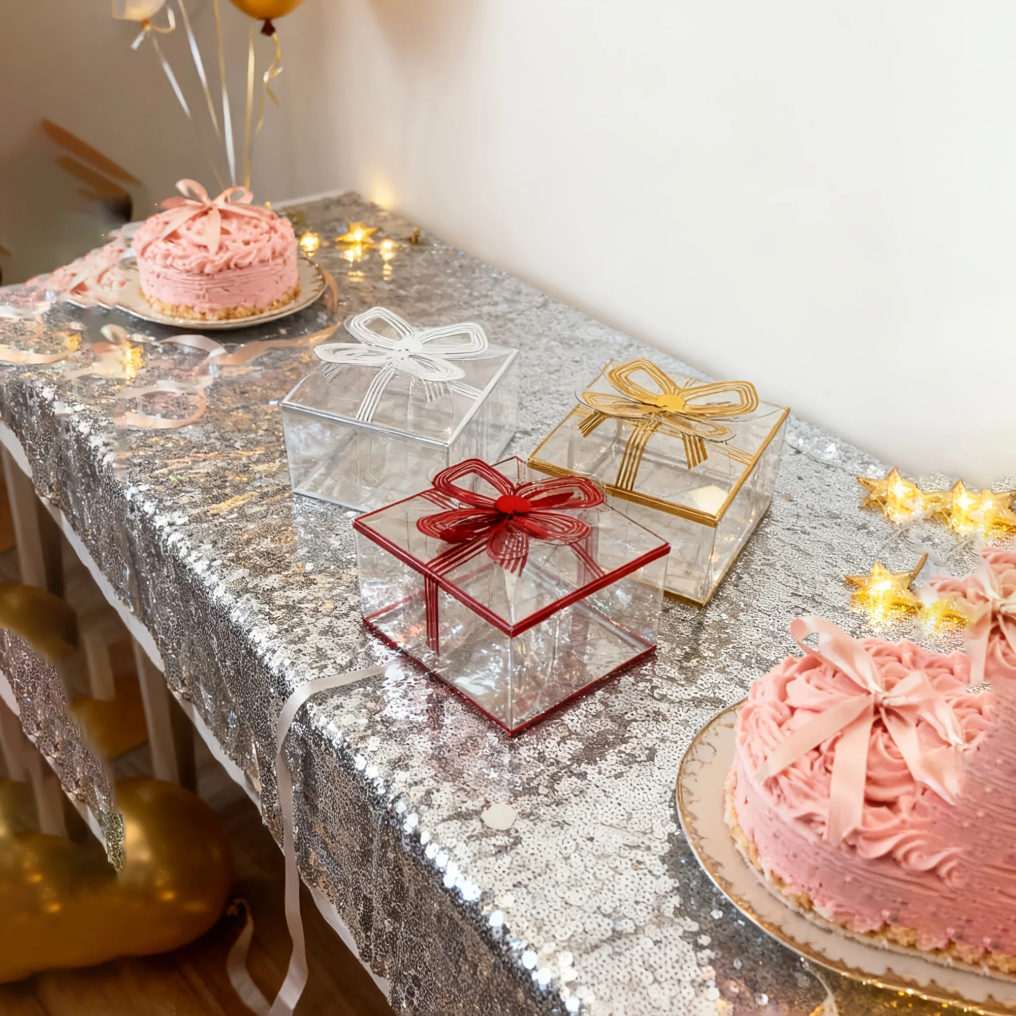 10 PVC Gold-Stamped Gift Boxes Square Bow-tie Plastic Gift Boxes, Perfect For Decorating Weddings Ch...