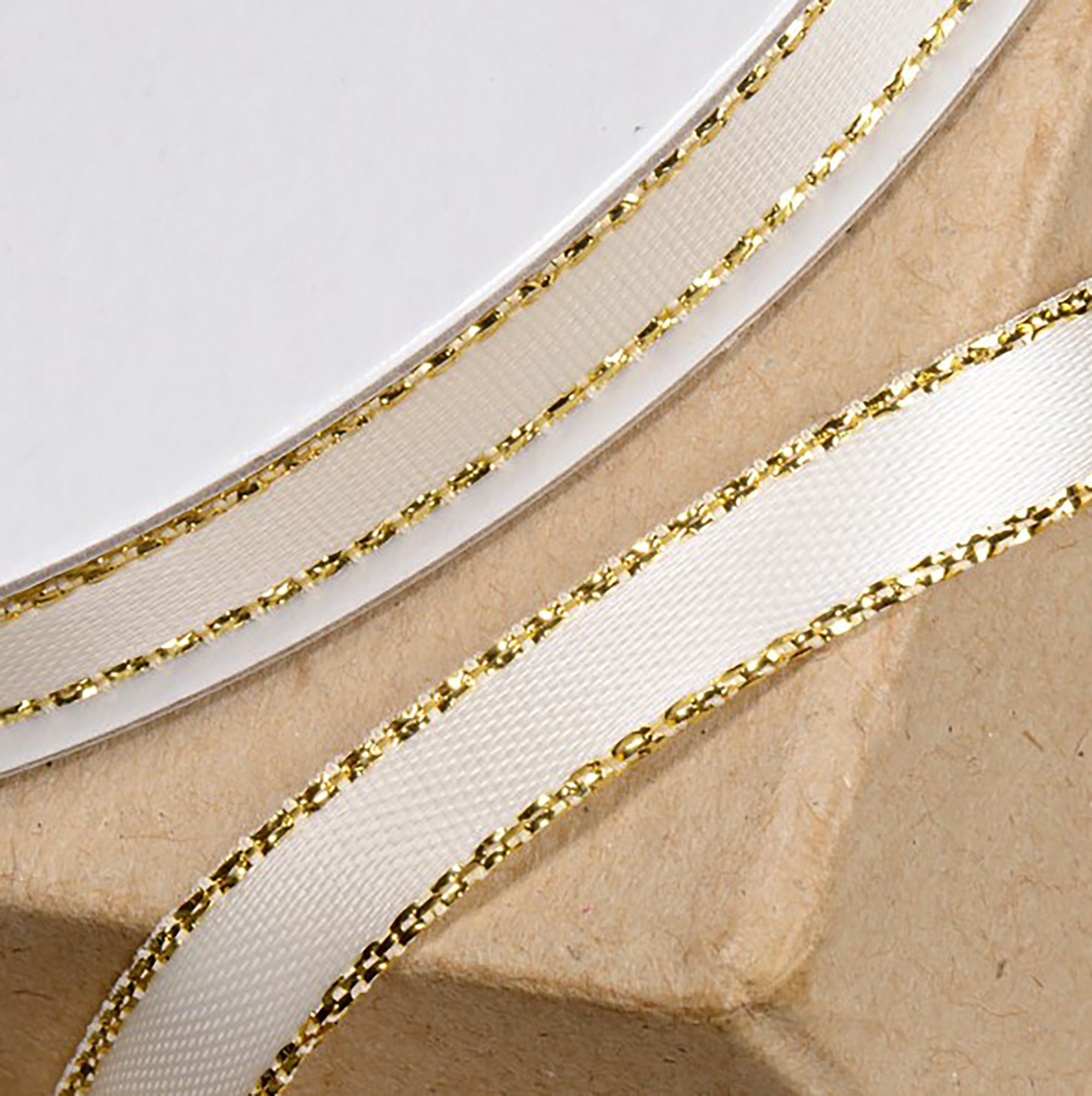 6mm X 25M SATIN LUREX RIBBON ivory cream with gold glitter edging f...