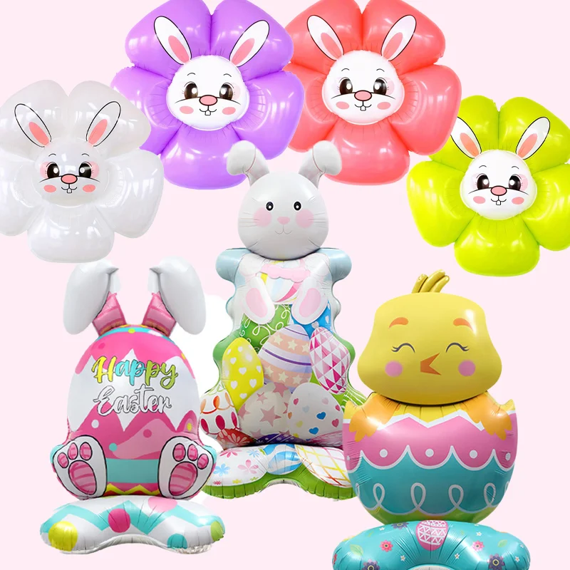 Large Easter Standing Balloons Bunny Rabbit Balloons Bunny color flower decor balloons easter bunny ...